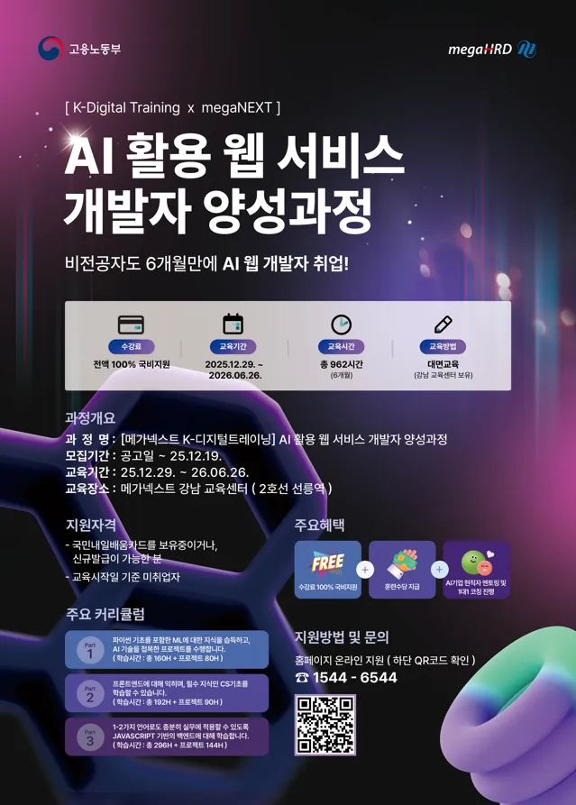 [K-๋์งํธํธ๋ ์ด๋] ๊ต์ก๋น ์ ์ก ๋ฌด๋ฃ! AI ํ์ฉ ์น ๊ฐ๋ฐ์ ์์ฑ๊ณผ์ ๋ชจ์ง