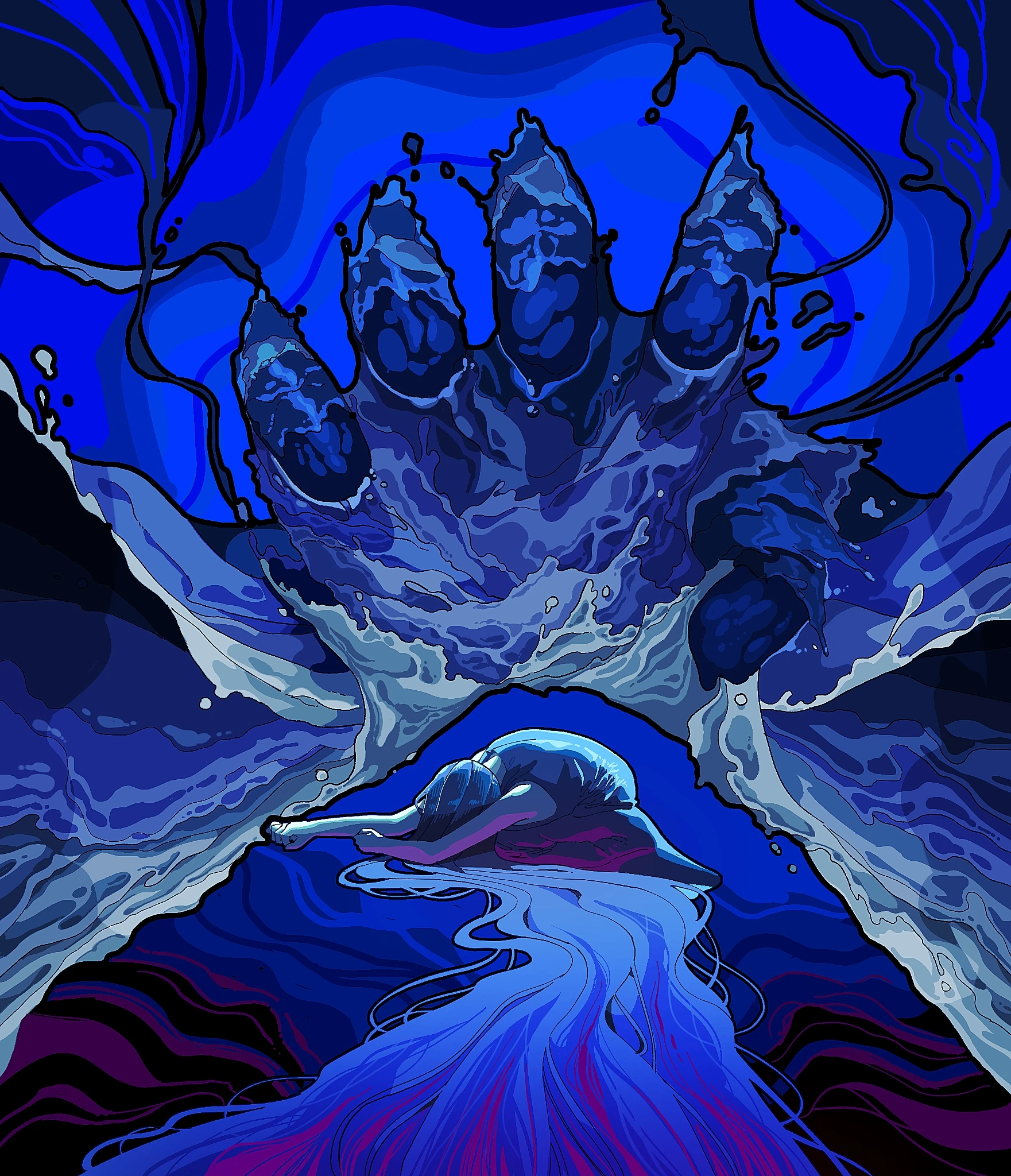 압박감 누군가에게 기대받고, 그 기대에 부응 받기 위해 스스로를 억누르는 행위는 마치 강한 파도에 저항하지 못하고 정면으로 들이 받는 느낌입니다. 기대에 부응해야하지만 부응하지 못하는 자신을 나타내기위해 파도를 손으로 형상화해 자신을 짓뭉개려는 모습을 나타내고자 했습니다.