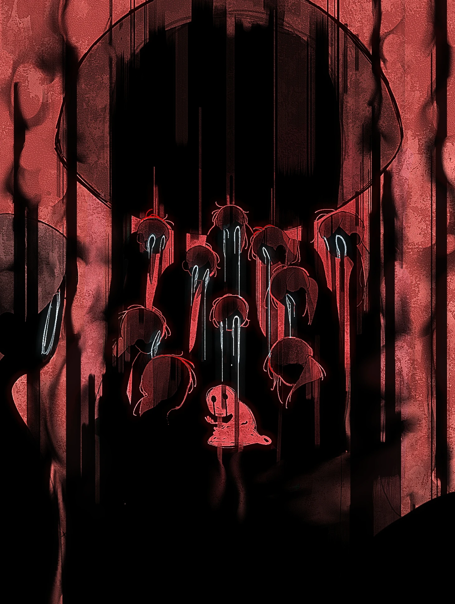 공포 자기혐오 아래, 한편으로 자기 자신에게 공포를 느낄 때도 있습니다. 자신이 자신의 기준에 미치지 못했을때 느껴지는 존재하지 않는 시선들이 마음을 억누르고 공포로 이끄는 감정을 표현하고자 했습니다.