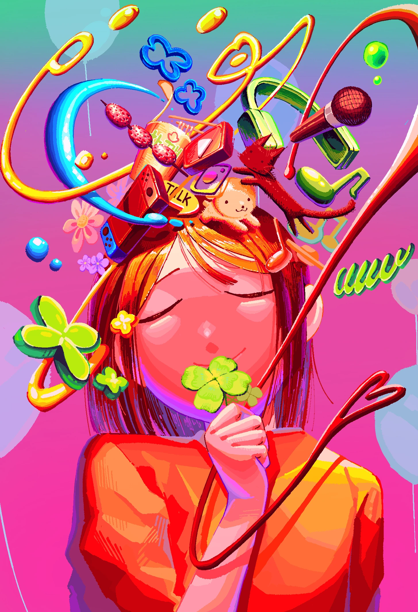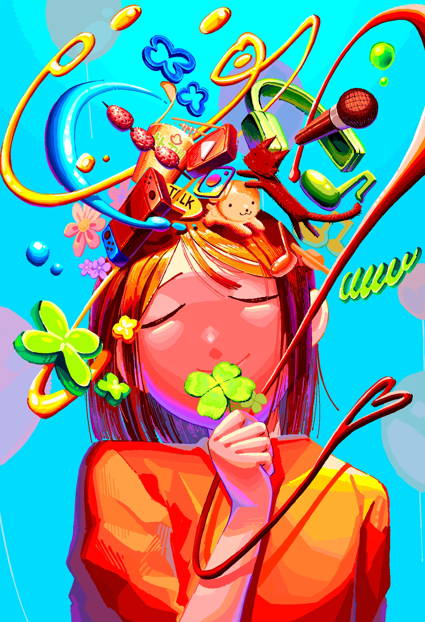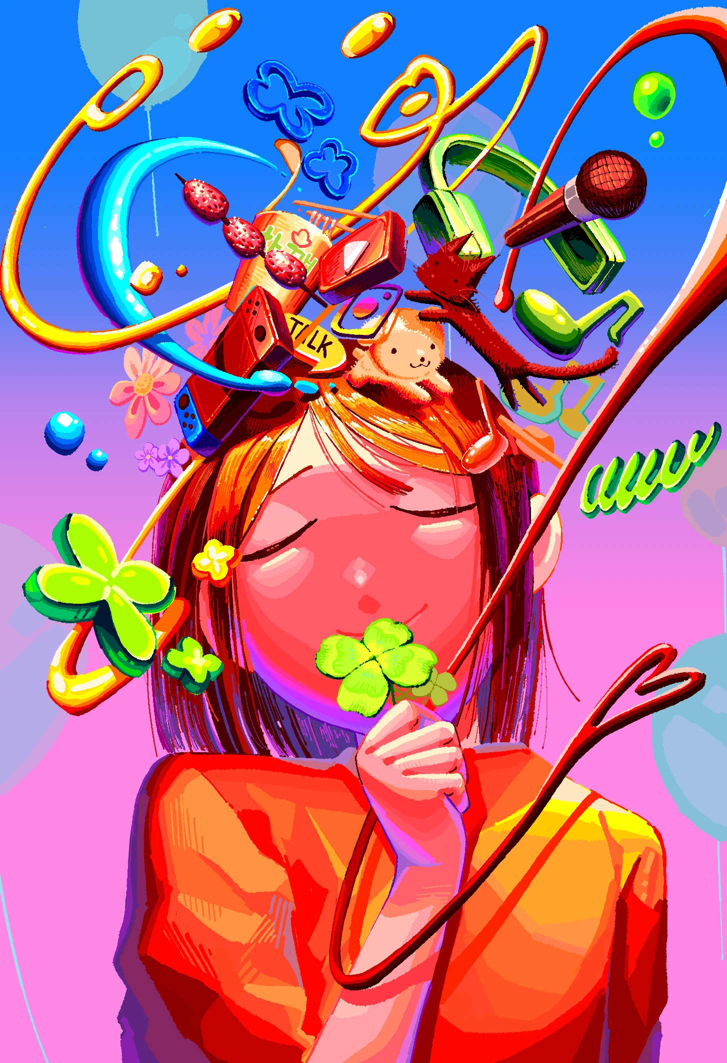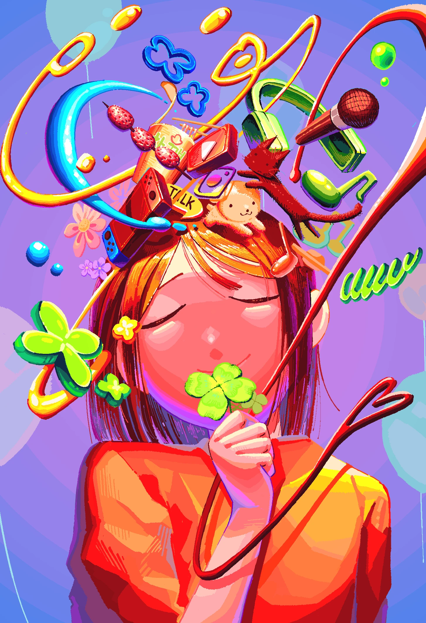 일상의 사소한 기쁨을 주는 오브젝트들을 배치해 밝고 발랄한 톤과 함께 표현하고자 하였습니다. 3D 폴리곤을 2D로 바꿈으로서 새로운 시도를 해보고자 하였으며 배경색을 한가지로 정하지 않고 다양한 색을 선택하여 기쁨의 다양한 스펙트럼을 표현하고자 했습니다.
