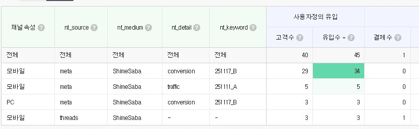 그러다 보니 광고별 유입을 확인 할 수가 없는데