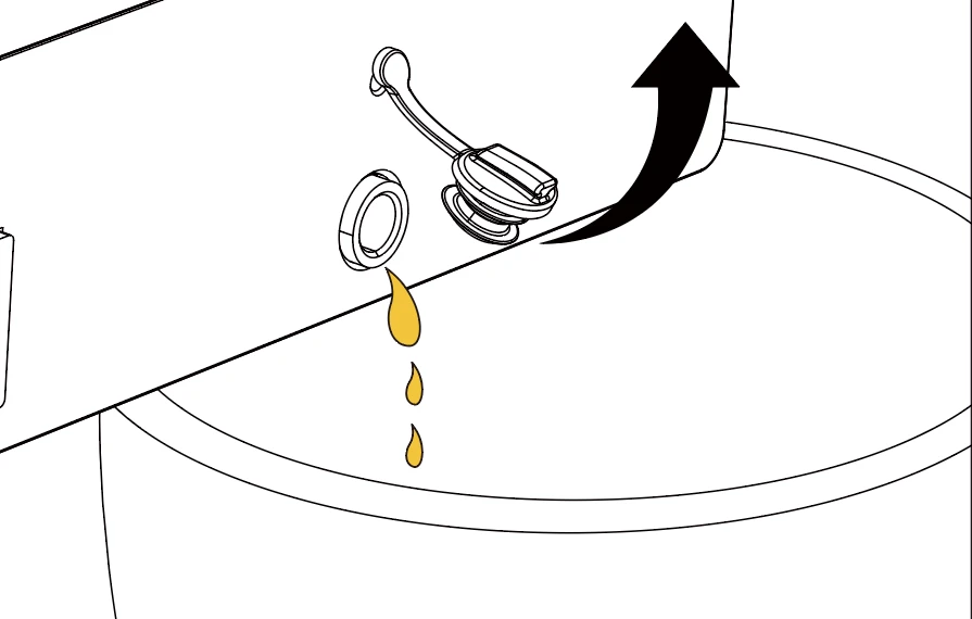 잔수통 마개 아래쪽에 잔수를 받을 수 있는 컵이나 그릇등을 받치고, 마개를 열어 고여있는 잔수를 배출해주세요.