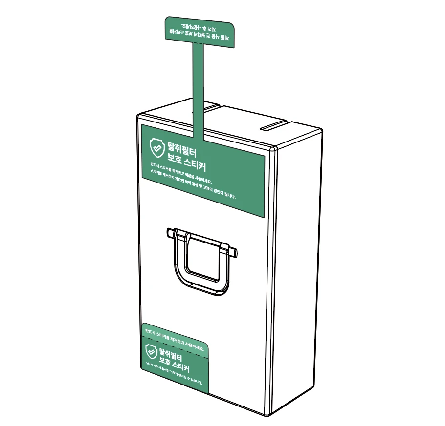 스티커를 제거한 후 필터를 장착할 때 방향을 잘 확인하고 장착하세요.