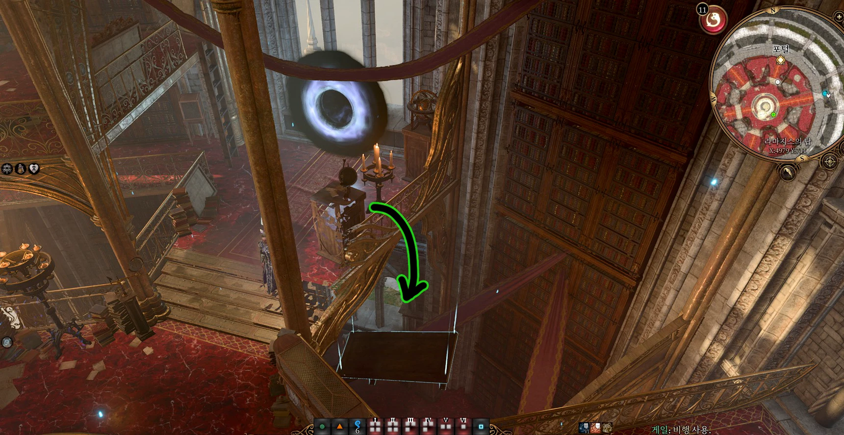 (참고 : 11시 방향에 있는 위브버튼을 활성화하면 빛나는 장비가 있는 아래층으로 이동할 수 있음→