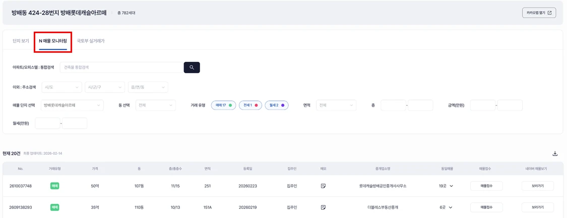 ✅ 3. [일반부동산] '매물 > N 매물 모니터링'에서 확인하는 방법