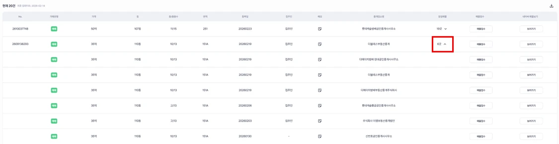 부동산 원장 관리에서 희망하는 단지 선택