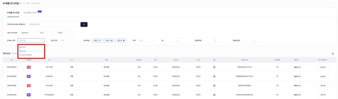 N 매물 모니터링 선택