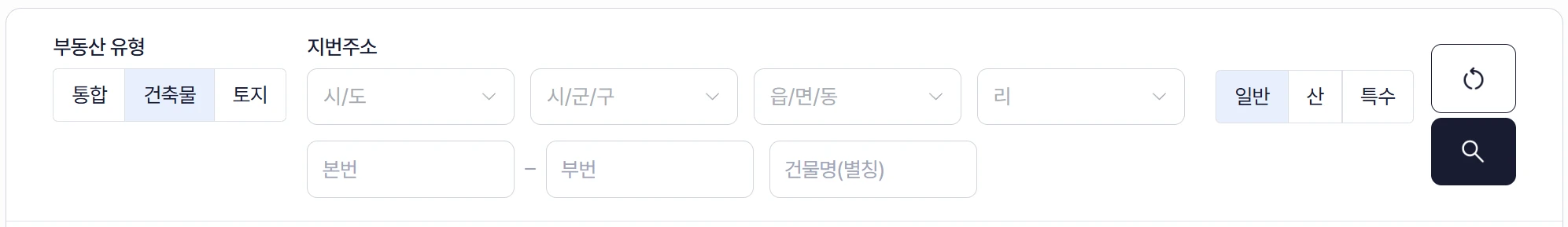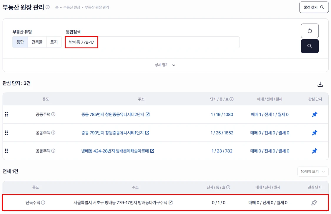 통합에서 검색되지 않으면 건축물로 이동하셔서 다시 검색하셔야 합니다.
