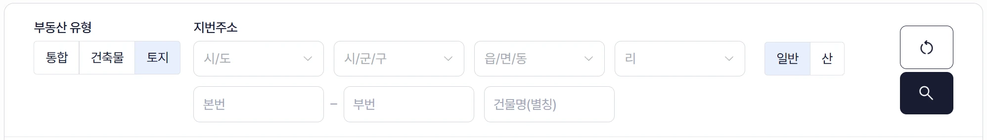 1) 토지에서 지번주소 선택