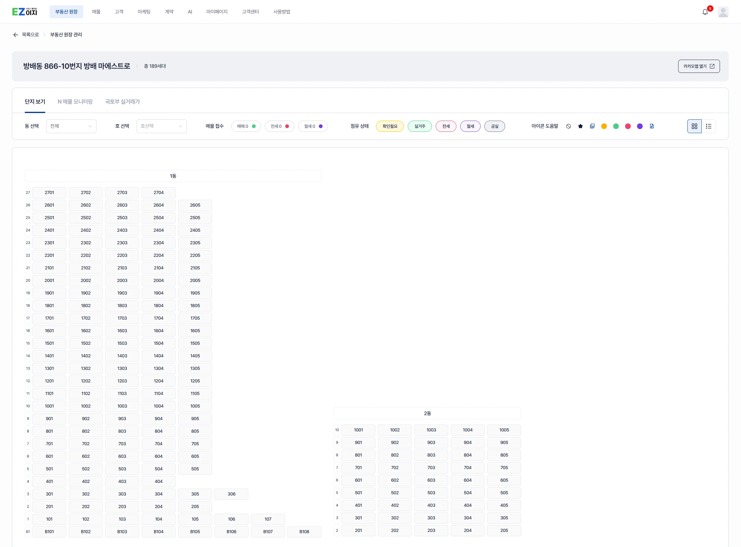 2) 단지를 클릭하면 동호수 정보를 가지고 있는 그리드가 보입니다.