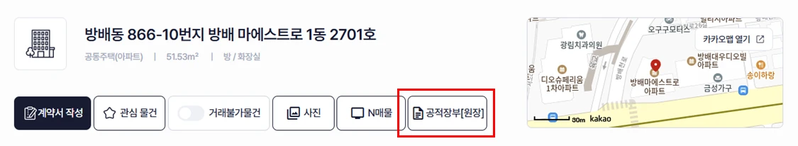 부동산 주소로 들어가면 공적장부[원장] 버튼을 찾을 수 있습니다.