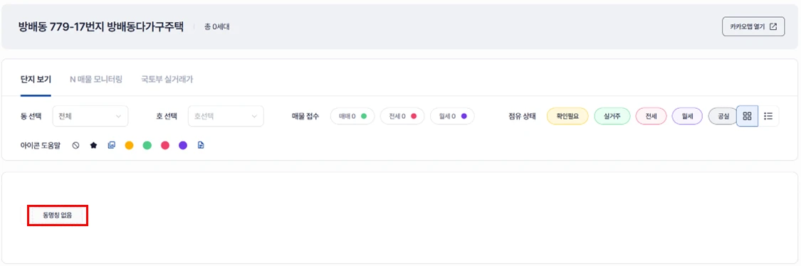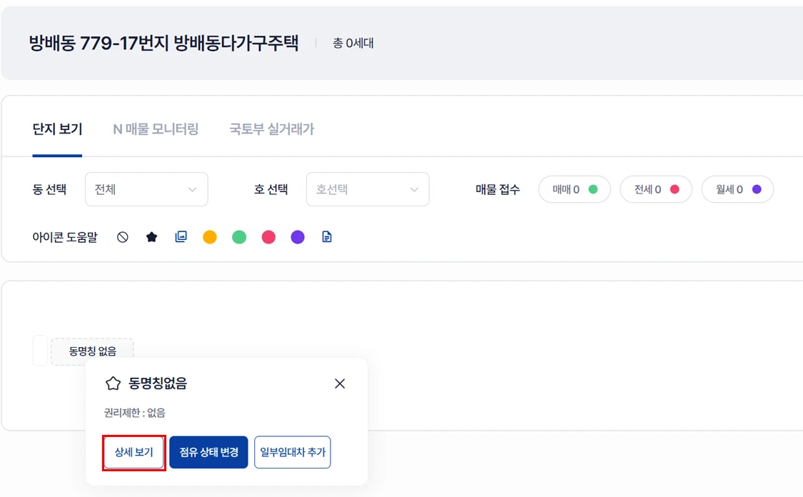 집합건물이 아닌 경우 그리드 한칸이 보입니다. 클릭하시면 부동산 정보를 확인할 수 있습니다.