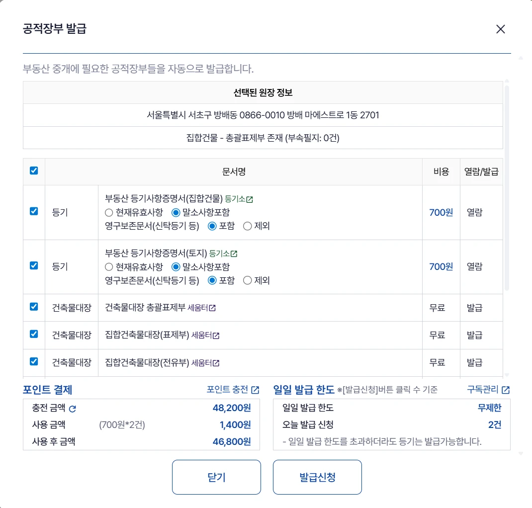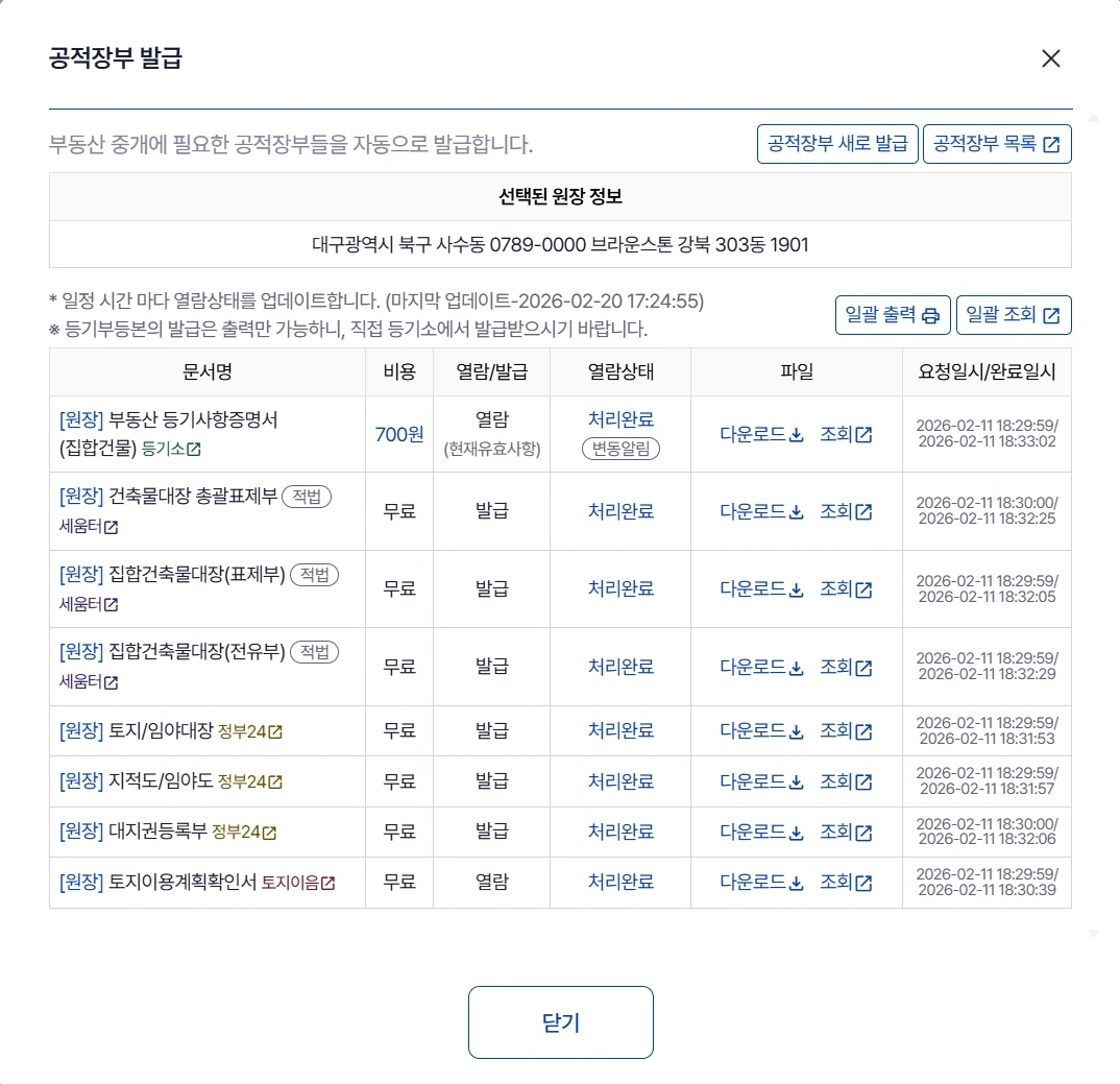 📍 Step3. 등기 및 공적장부 일괄 열람과 발급