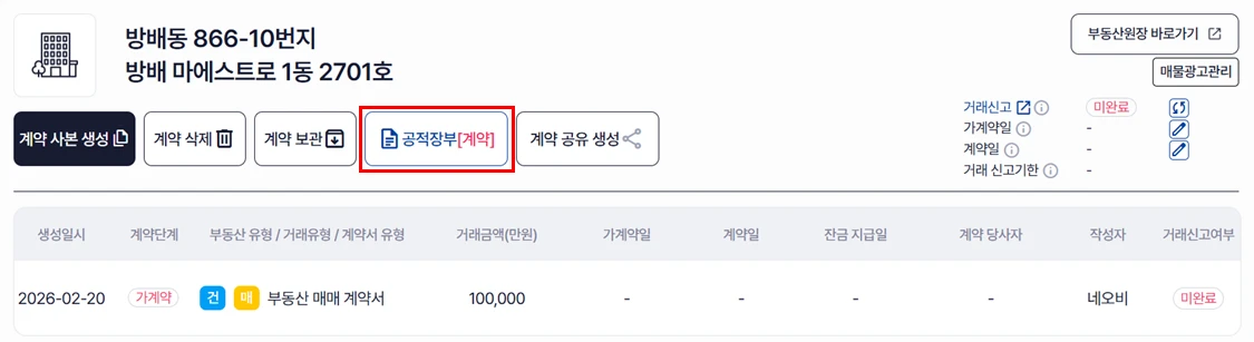 공적장부[계약] : 계약서 작성하면서 열람 및 발급하는 공적장부는 공적장부[계약]이라고 합니다.