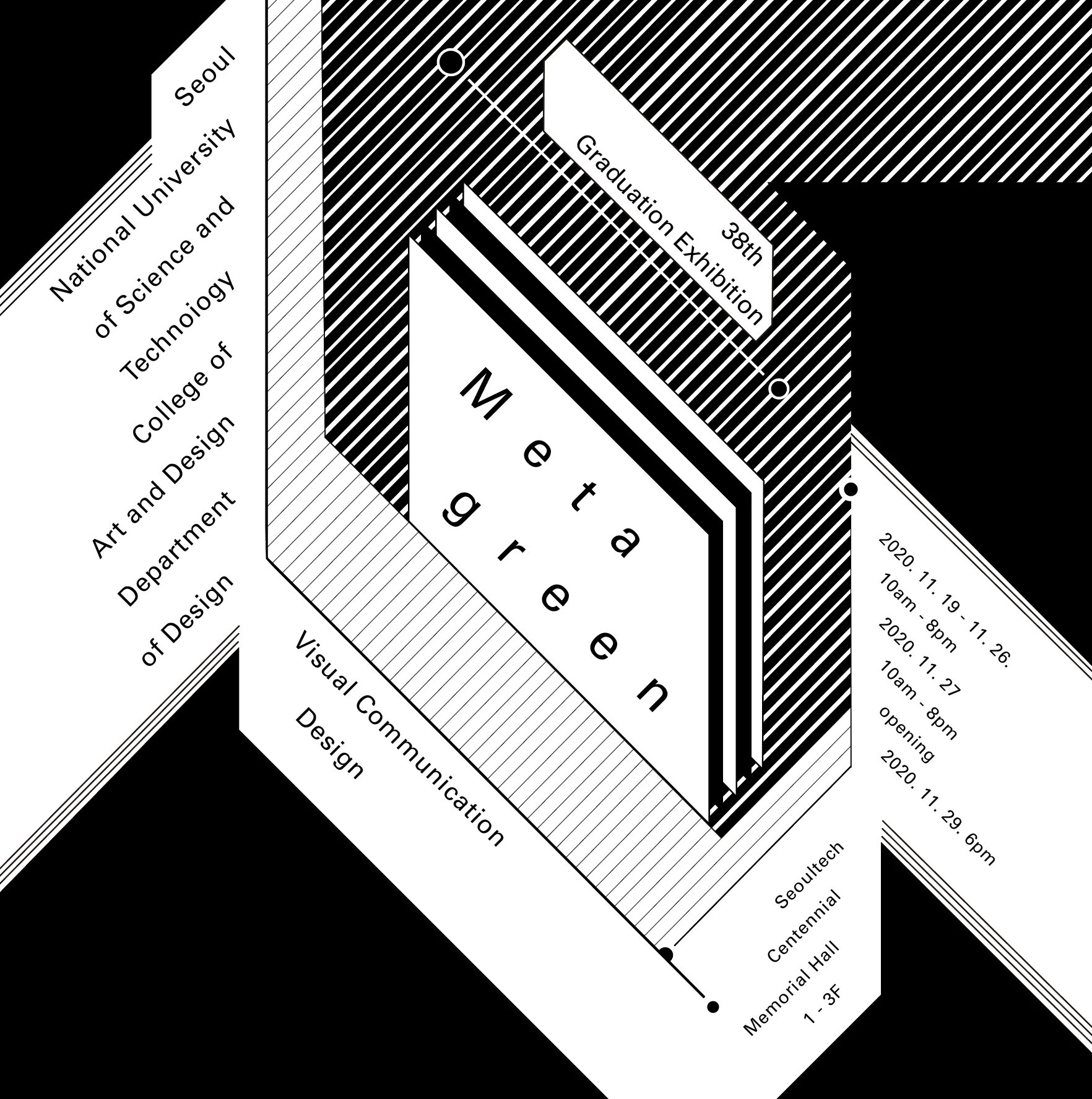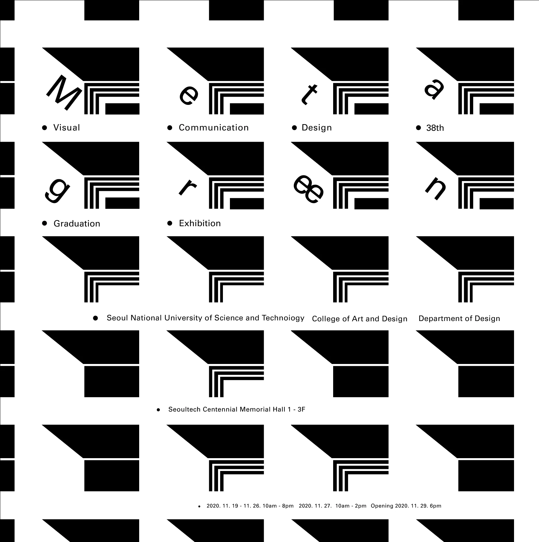 가장 제한적이고 단순한 조건(가로 그리드만 사용)에서 시작하여 최종 조건(가로, 세로, 자유 대각선, 점, 선, 면을 모두 사용해야, 글자 크기 자유)에 이르기까지 매주 다른 방식으로 범위를 넓혀가며 작업했습니다.