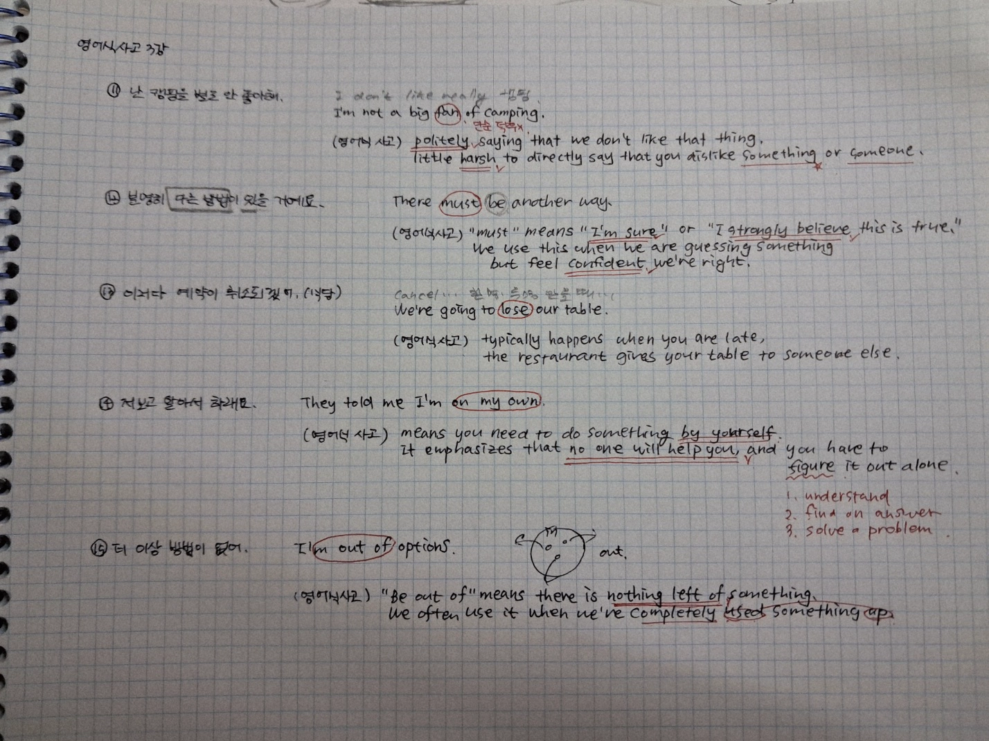 한국어 뜻에 갇혀서 영어가 떠오르지 않는다.