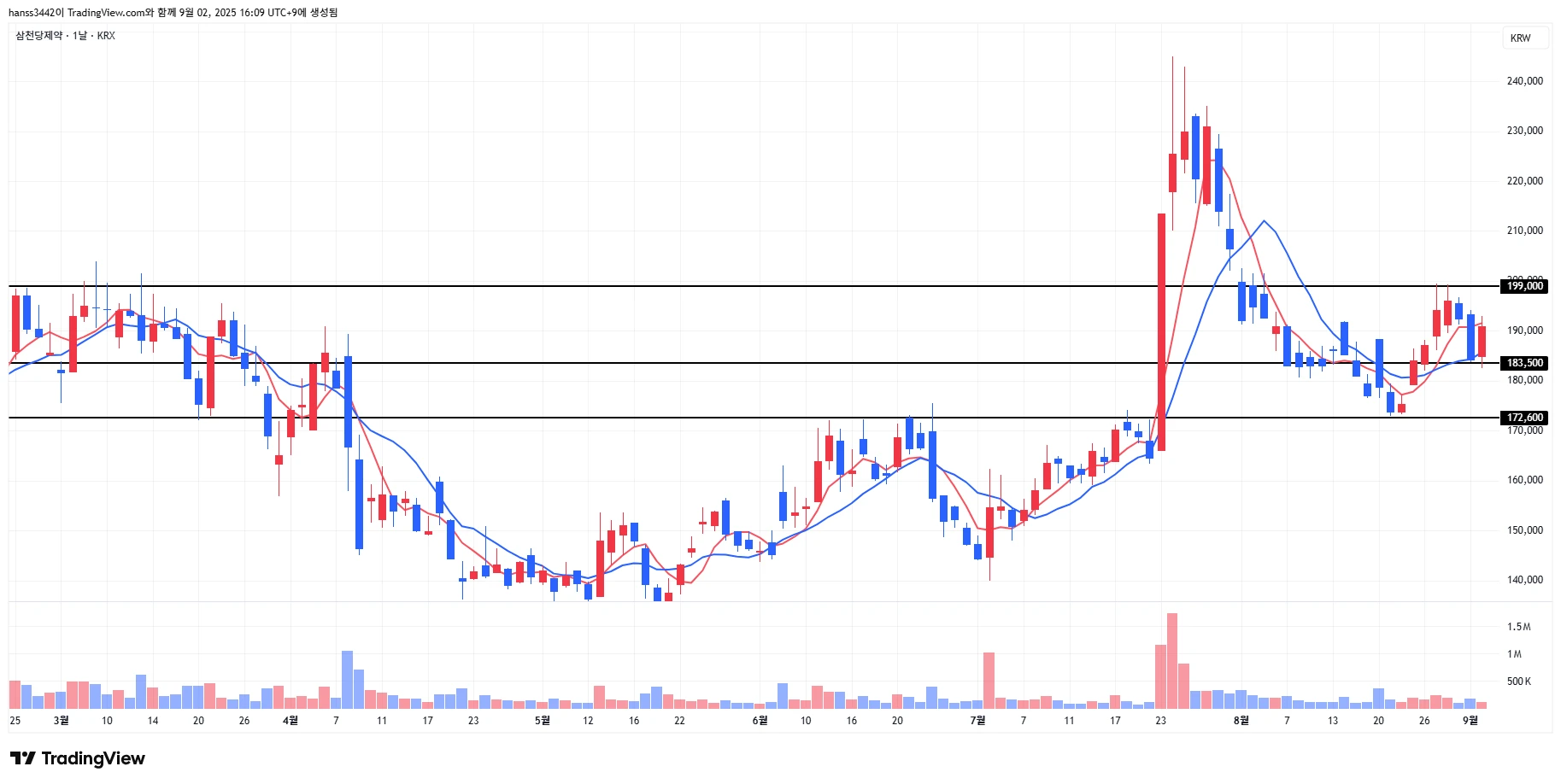 3) 삼천당제약 : 1차 지지 구간에서 강한 반등 성공