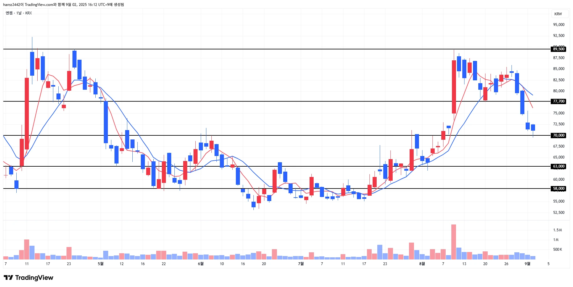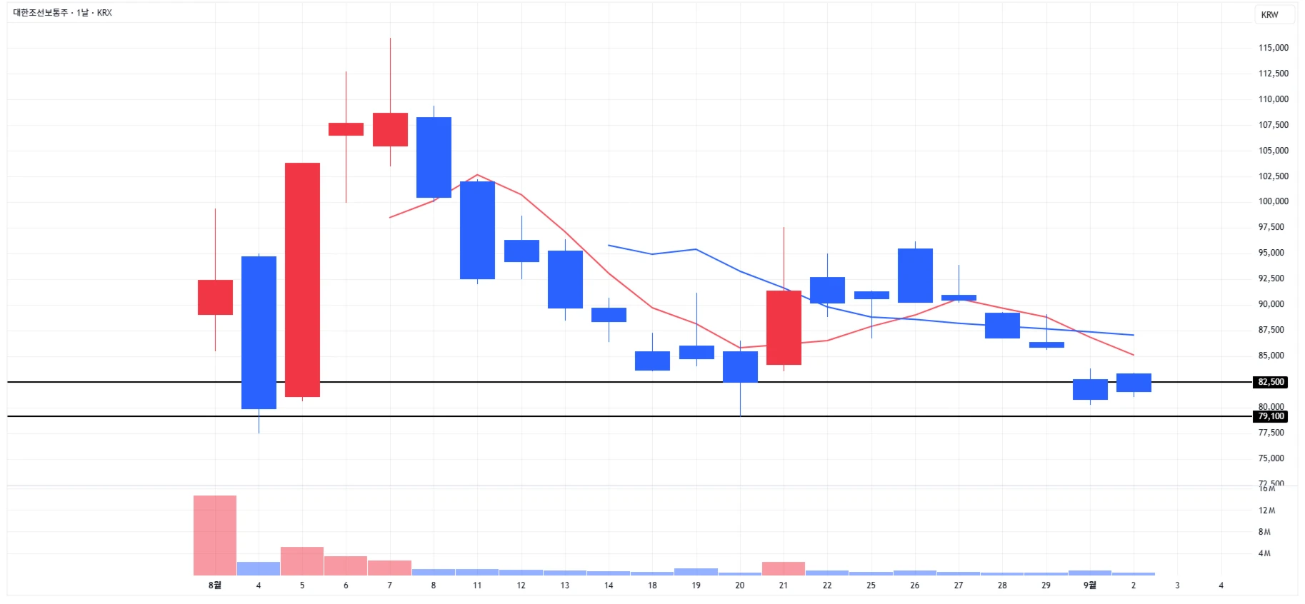 → 조정이 지속되며 직전 저점인 79,100원 이탈 시, 추가 하락 발생 가능성이 높기에 주의 필요