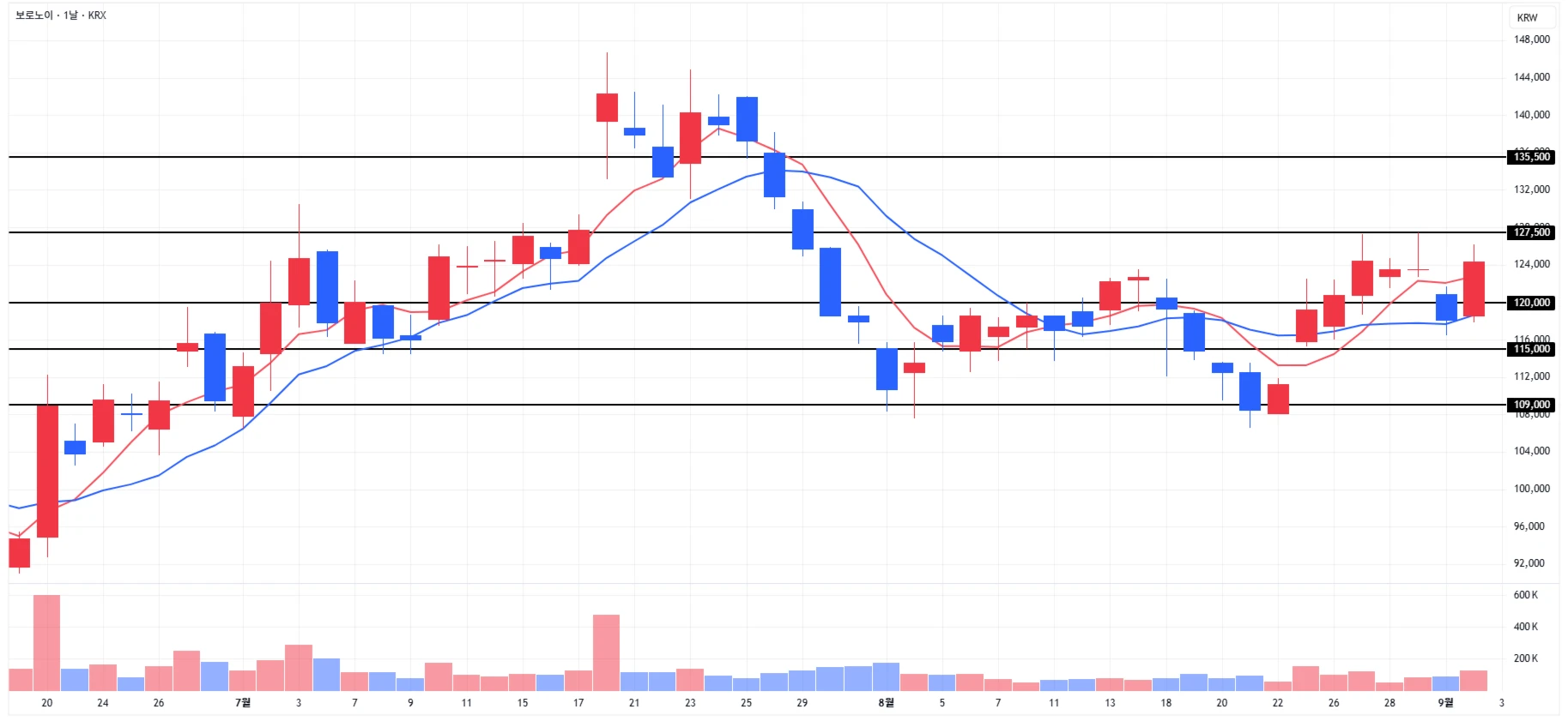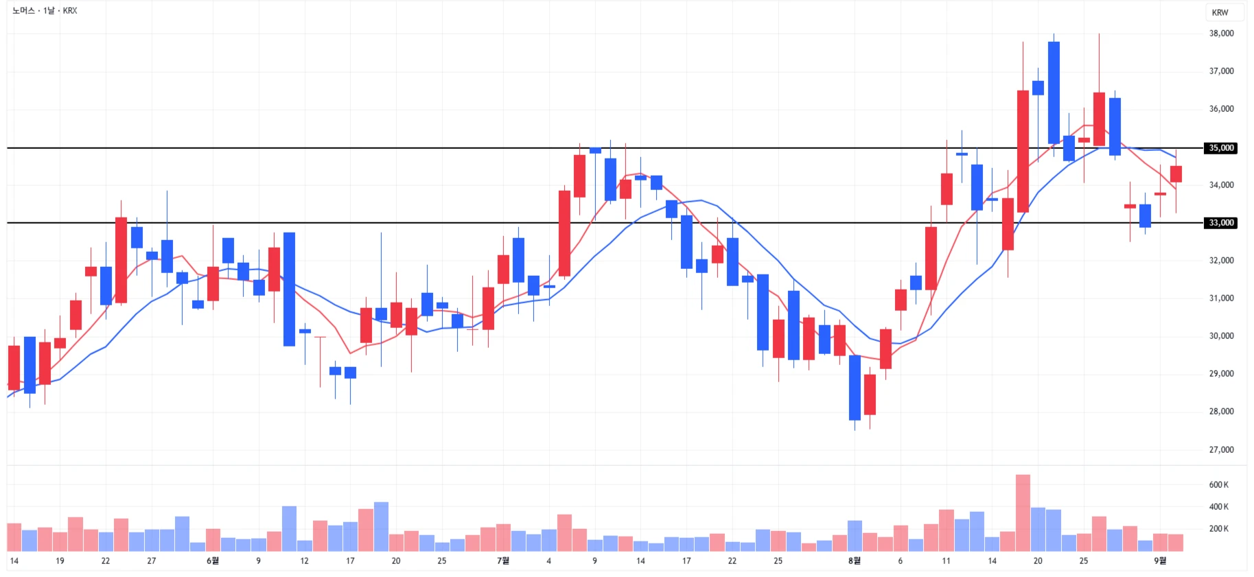 2) 노머스 : 당일 장중 1차 저항 구간까지 도달하는 등, 최근의 하락분을 크게 회복해 준 상황