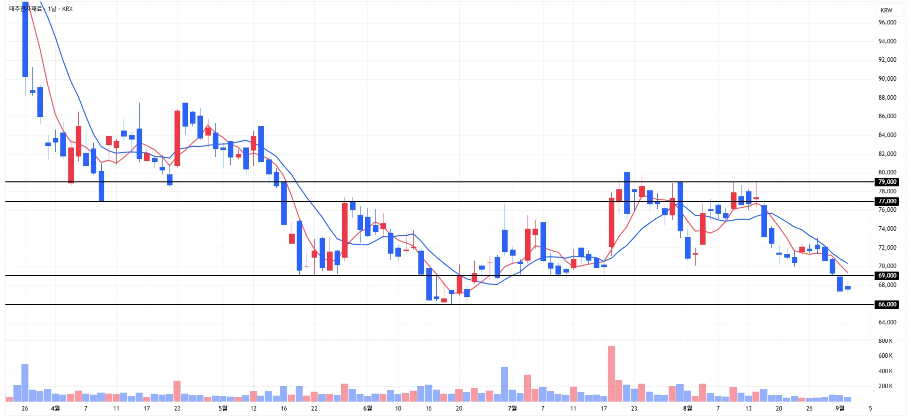 3) 대주전자재료(음극재) : 큰 변동성 없이 어제와 비슷한 가격으로 마무리