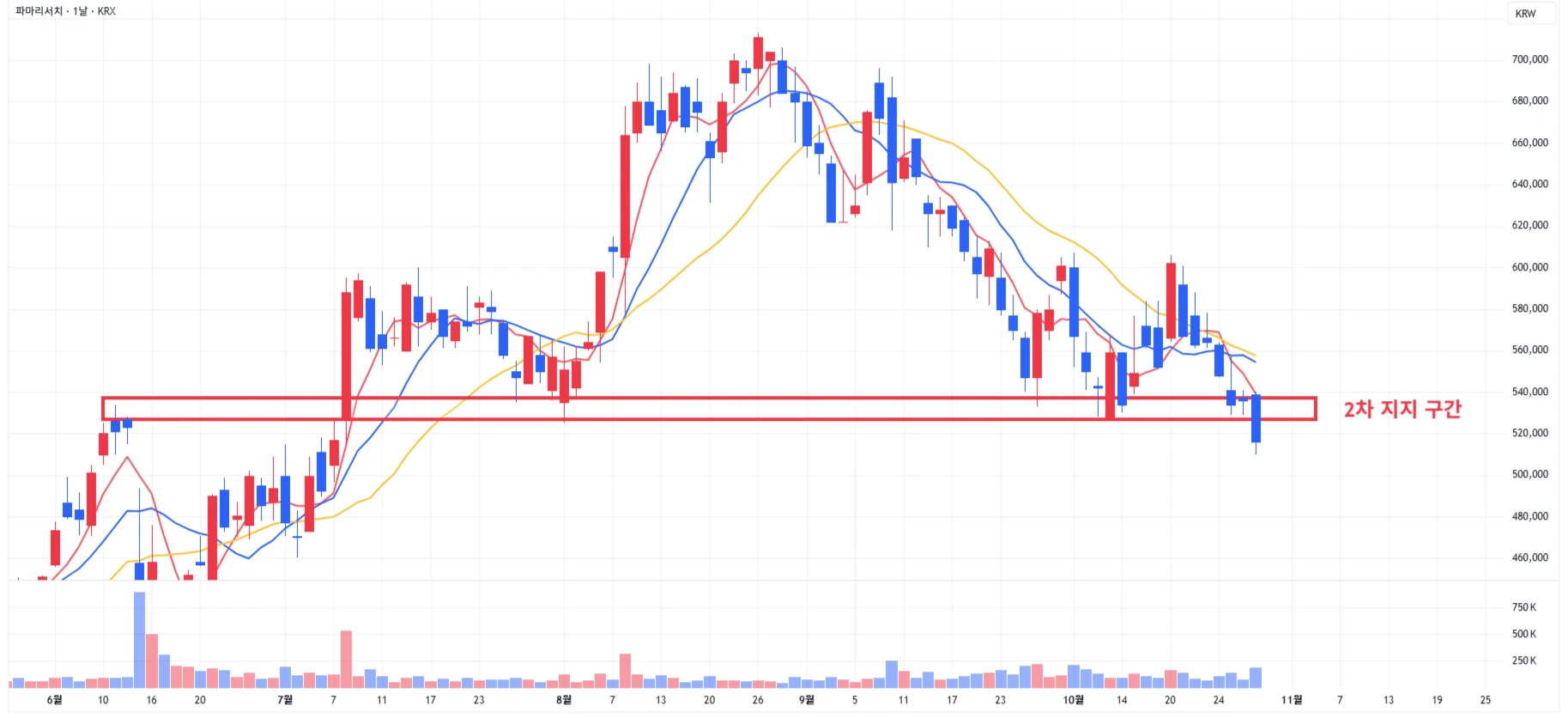 4) 파마리서치 : 당일 2차 지지 구간 하단을 이탈하며 마무리