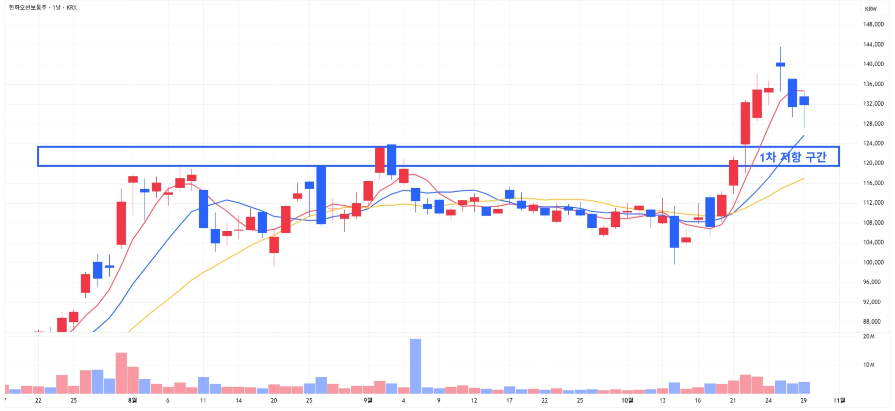 2) 한화오션 : 당일 큰 변동성 없이 마무리 되었으나,