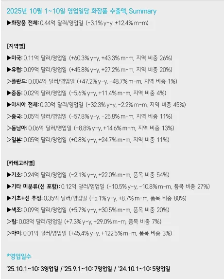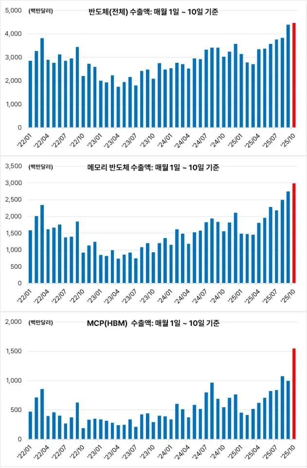 → 10월 1~10일 수출데이터 : 연휴로 인해 조업일 수가 적었음에도, 동일 기간 최대 수출액 달성