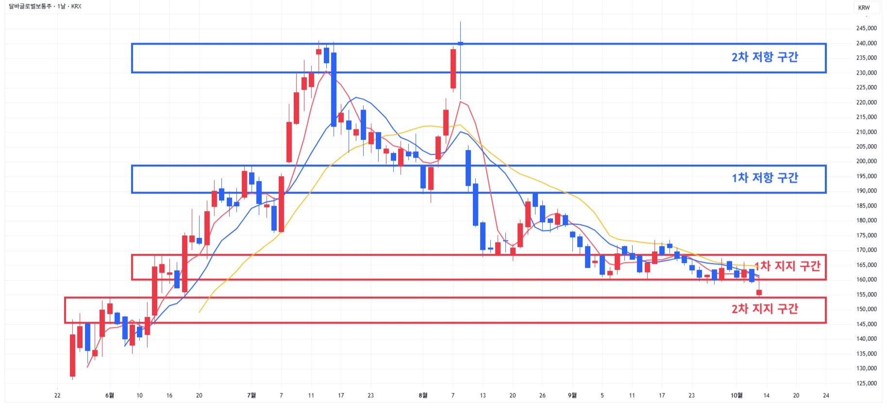 → 매수 시나리오 예시) 1차 지지 구간 도달 시 분할 매수 진행