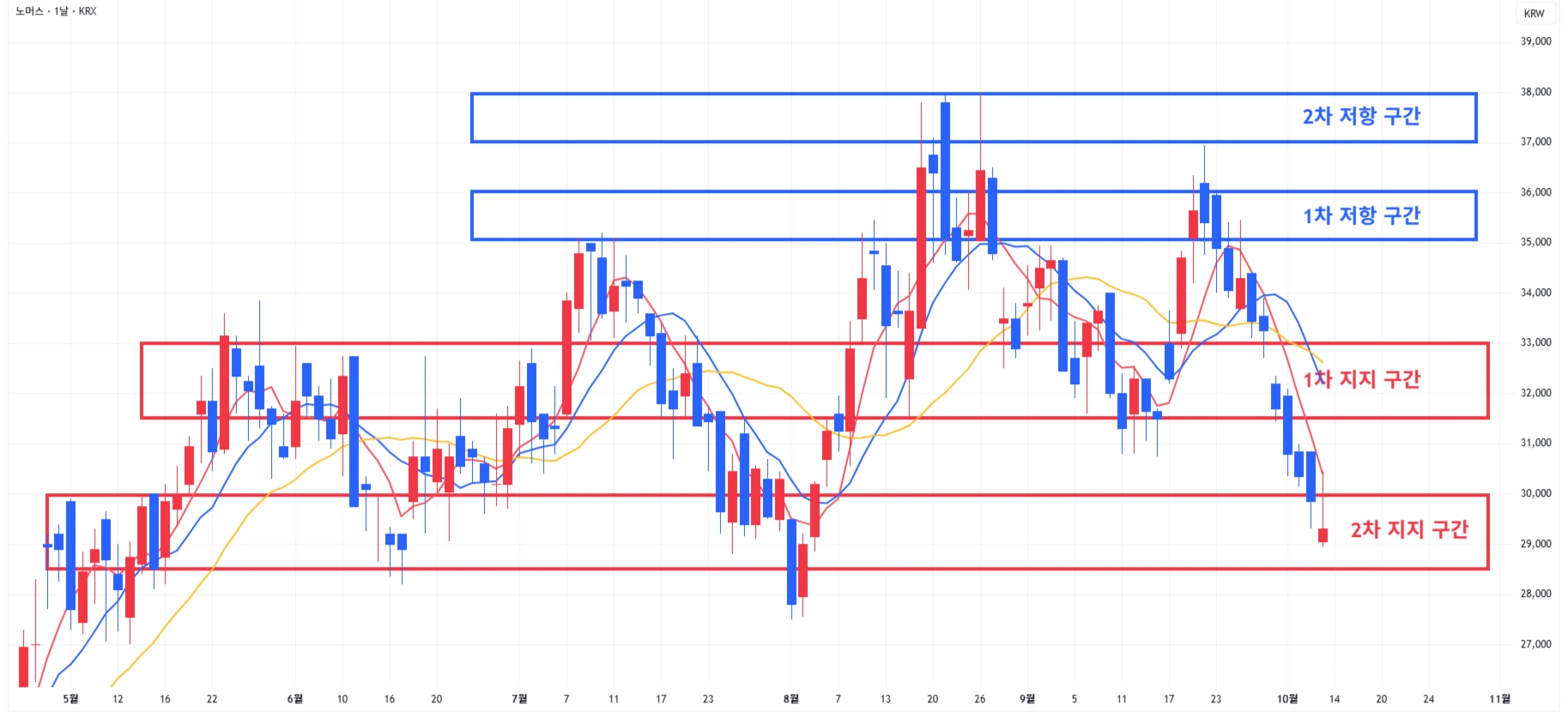 → 매도 시나리오 예시) 1) 1차 저항 구간 도달 시 보유 물량의 30% 이상 분할 매도 진행 시작 2) 2차 저항 구간 도달 시에도 보유 물량의 2~30% 이상 분할 매도 진행