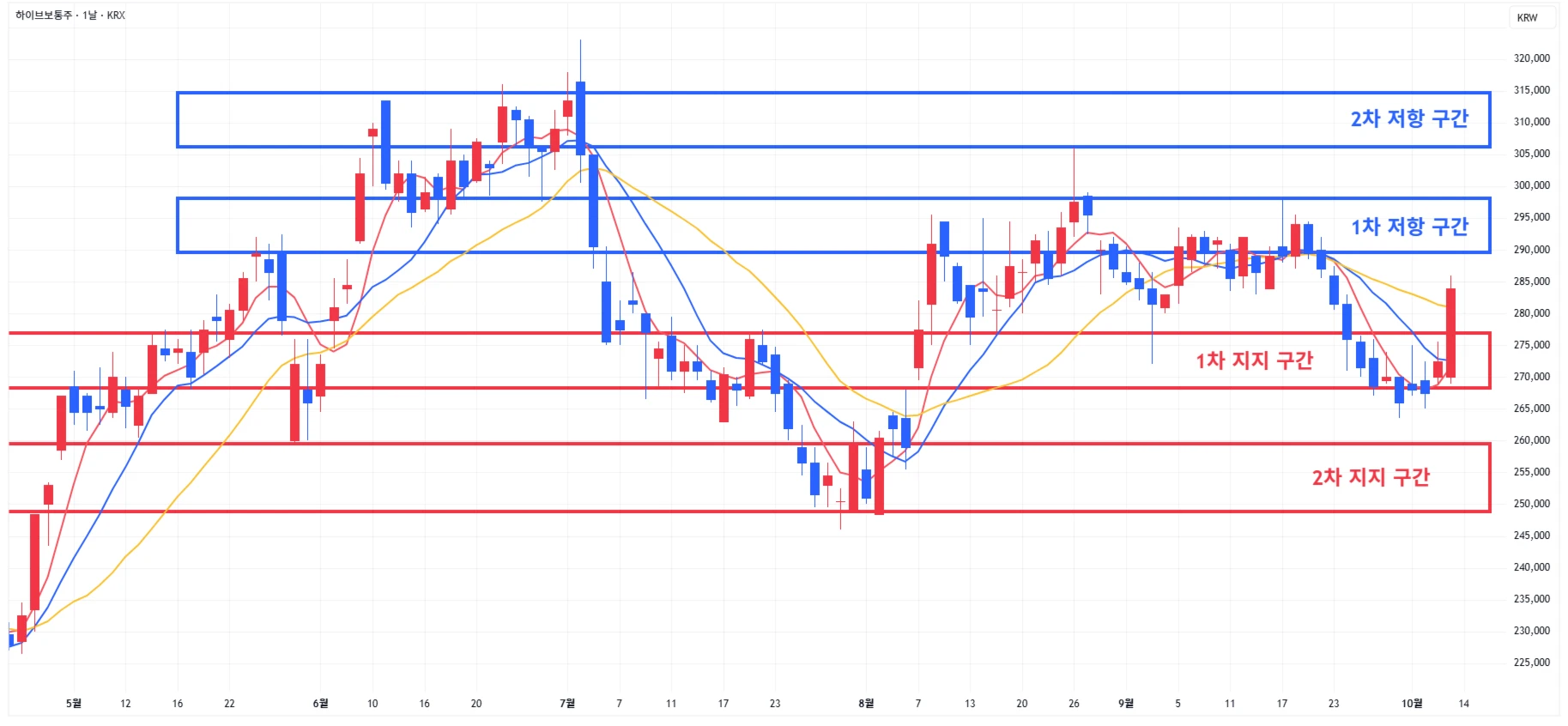 → 매도 시나리오 예시) 1차 저항 도달에 30% 가량 분할 매도 진행
