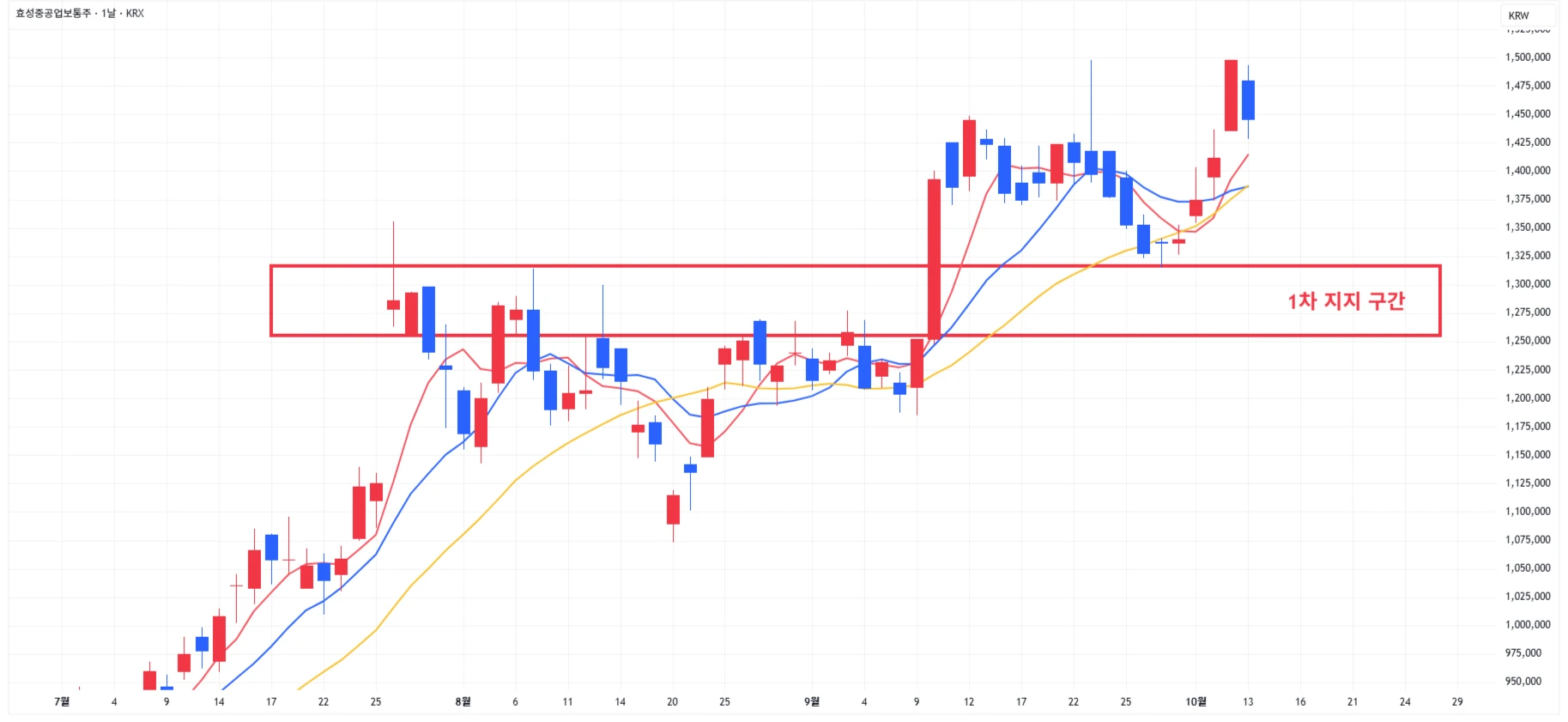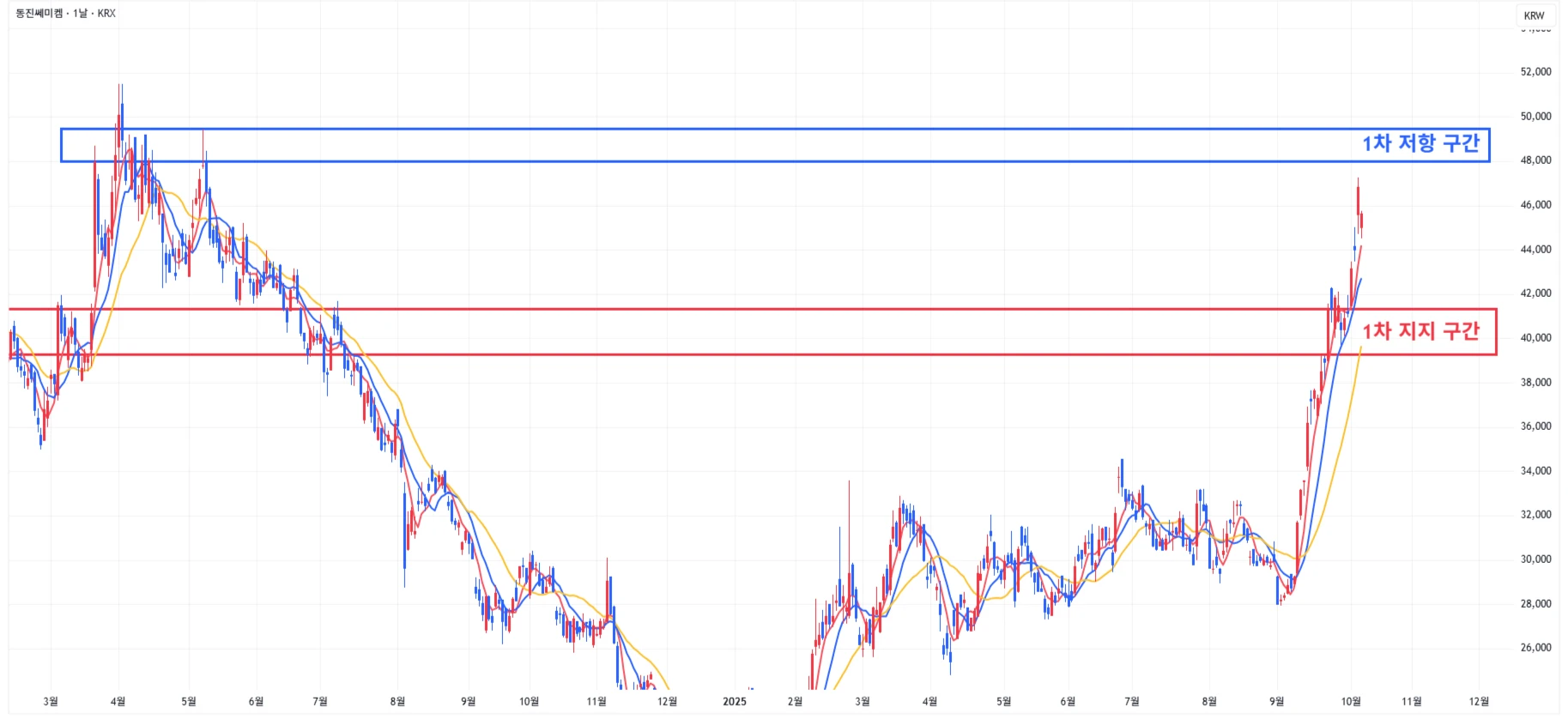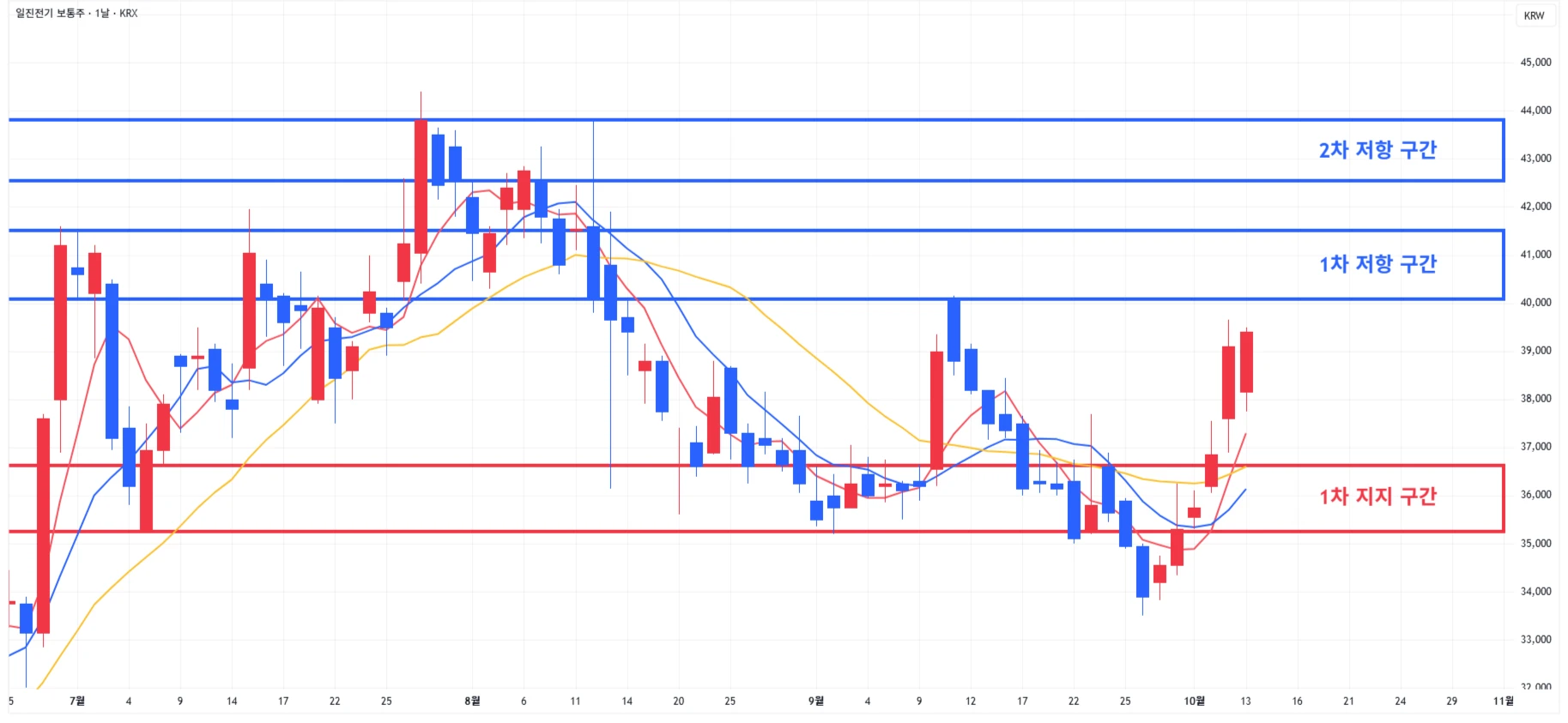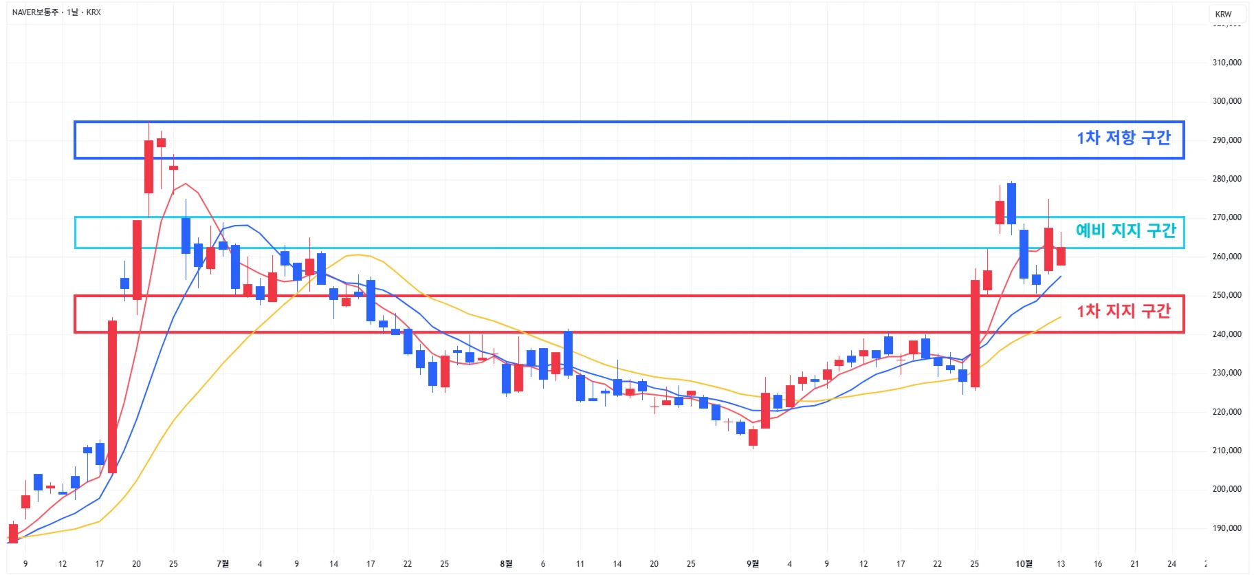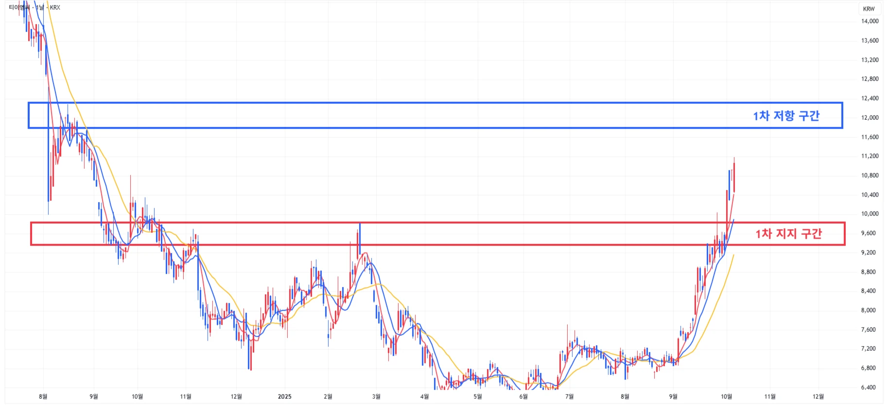 → 매수 시나리오 예시) 1차 지지 구간 도달 시 분할 매수 진행 * 1차적 상승이 발생한 상황이기에 섣부른 추격매수는 위험함을 인지