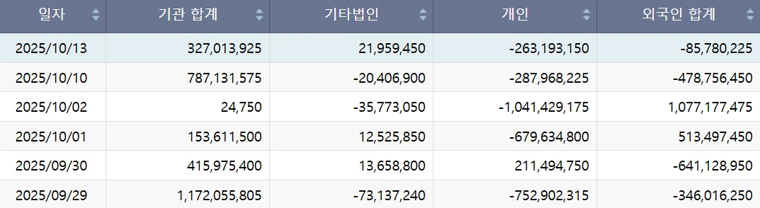 → 수급 현황 : 기관 순매수는 지속되는 중