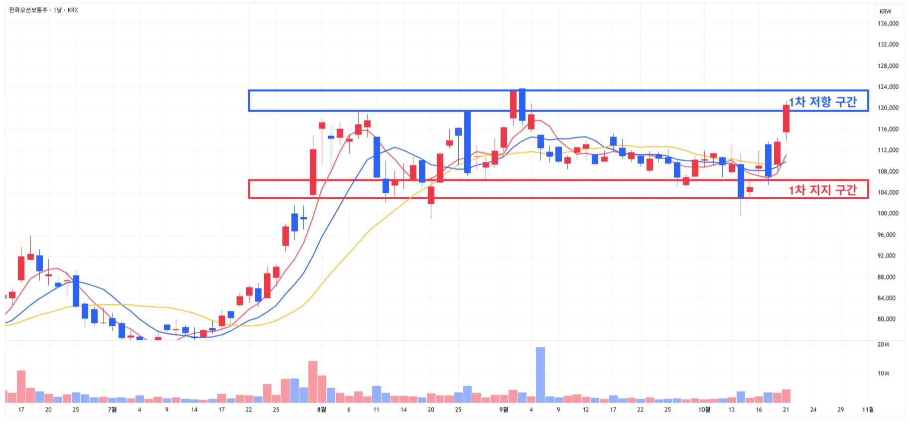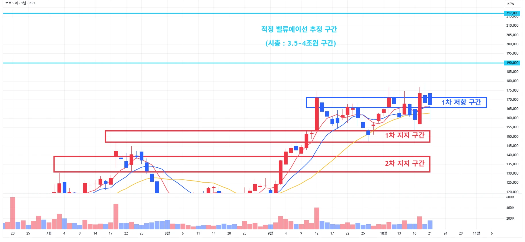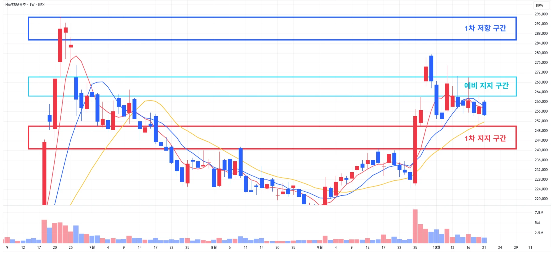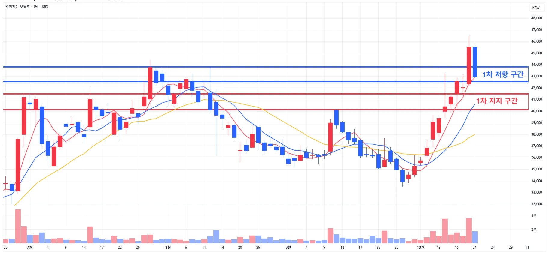 → 매수 시나리오 예시) 1) 1차 지지 구간 내 분할 매수 진행 2) 1차 지지 구간 하단 이탈 시에는 일부 물량 손절 후, 2차 지지 구간 도달 시 분할 매수 진행