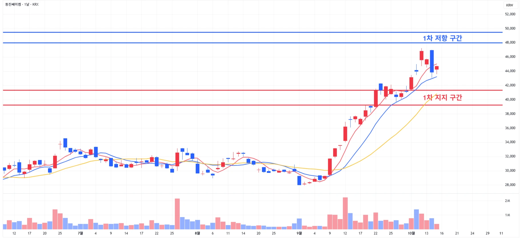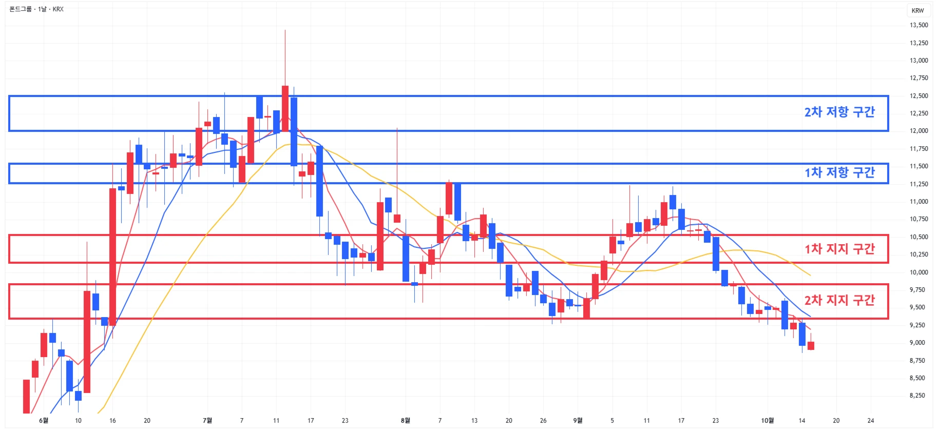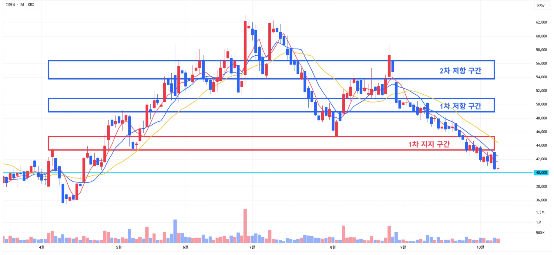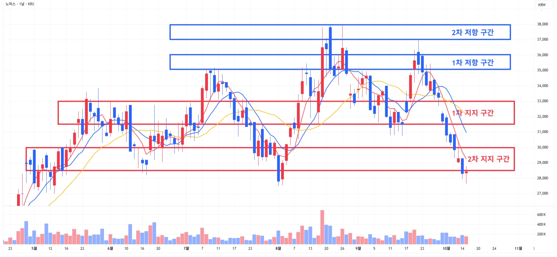 → 매수 시나리오 예시) 1) 1차 지지 구간 내 분할 매수 진행 2) 1차 지지 구간 하단 이탈 시에는 일부 물량 손절 후, 2차 지지 구간 도달 시 분할 매수 진행