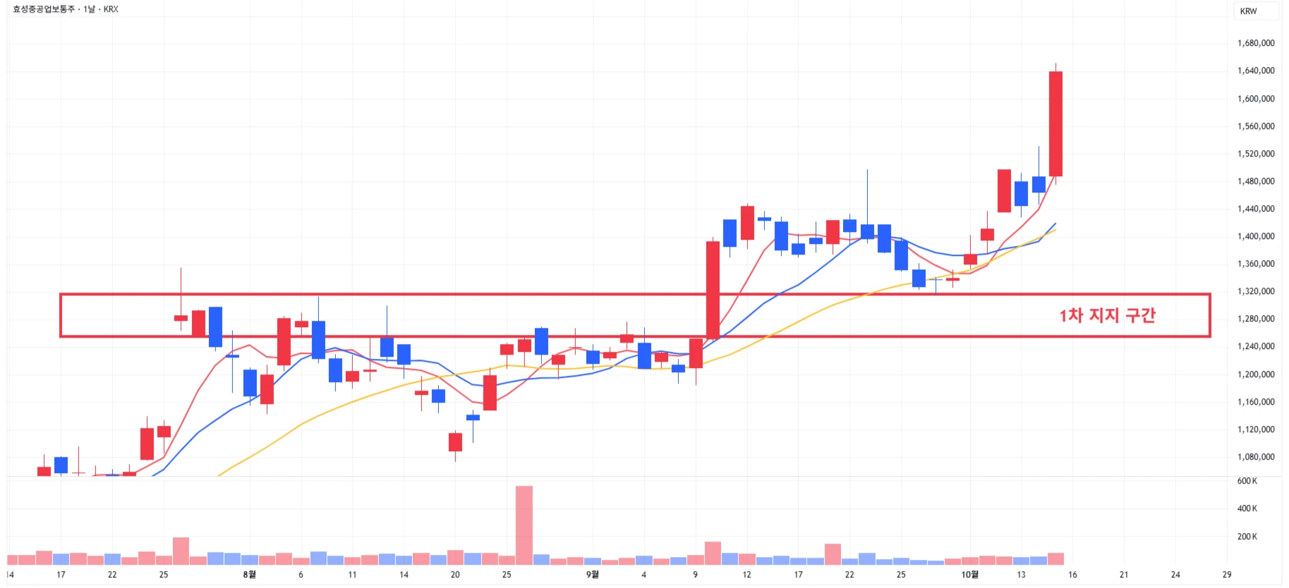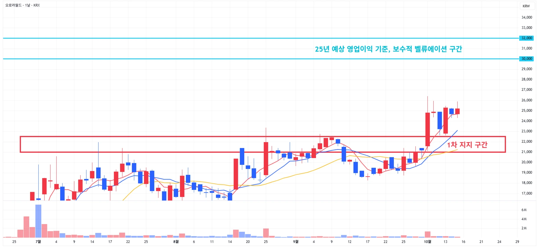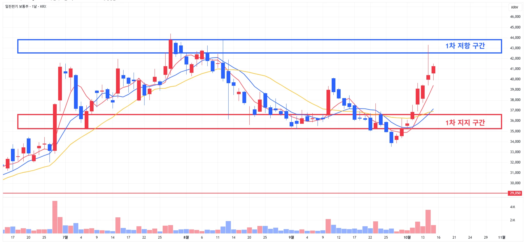 → 매수 시나리오 예시) 1차 지지 구간 도달 시 분할 매수 진행 * 1차적인 상승이 발생하였기에, 무리한 신규 진입은 금물