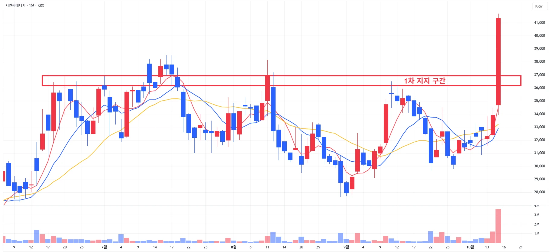 1) 지엔씨에너지 : 3분기 실적 호조 기대감과 향후 성장성이 부각되며, 역사적 신고가 돌파 후 마무리 → 최근 부각받는 가스터빈에 대한 발전 기술도 부각되며 상승에 힘 보탠 상황