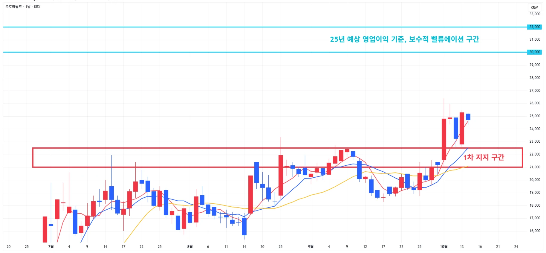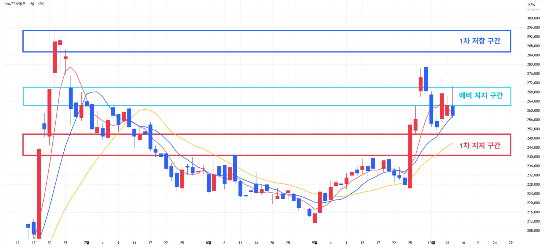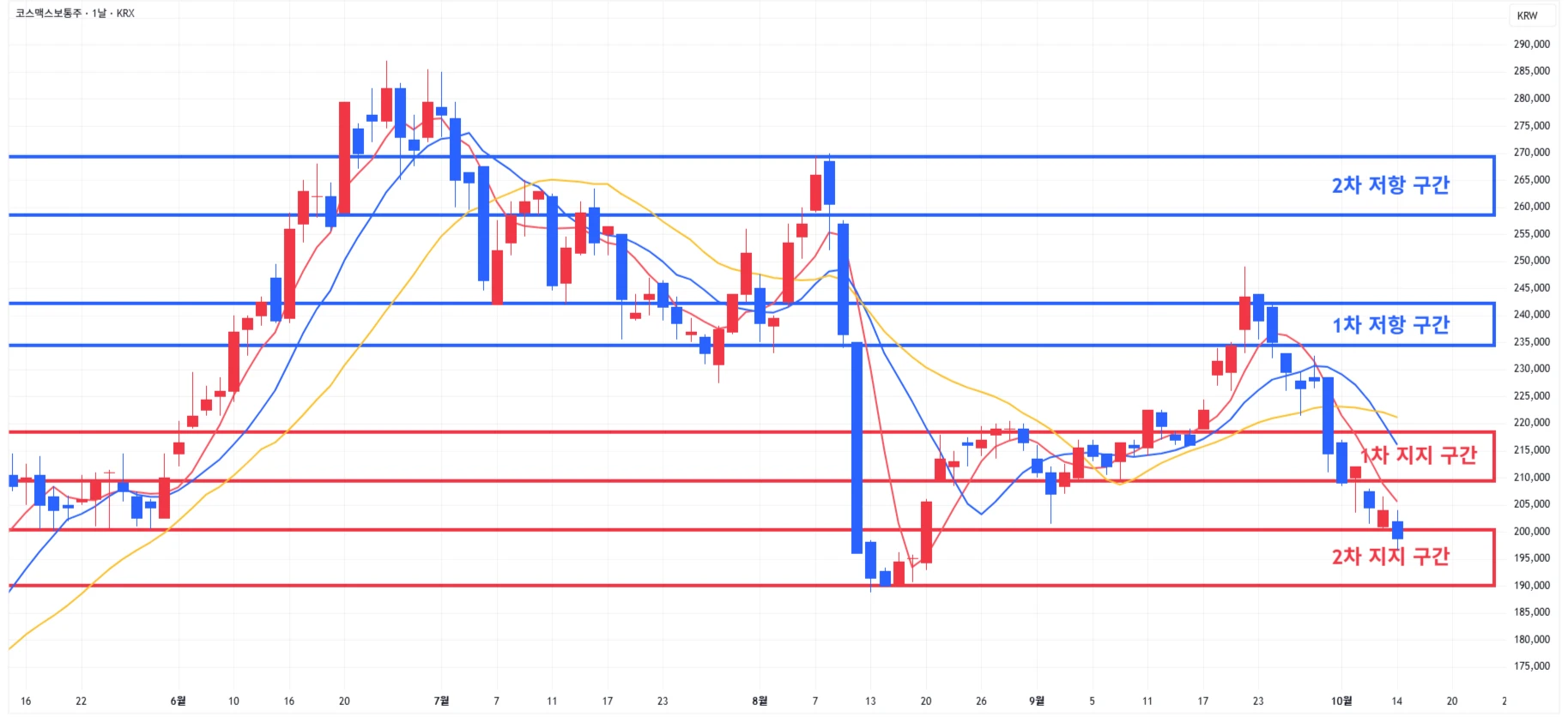 → 매수 시나리오 예시) 2차 지지 구간 회복 시 분할 매수 진행
