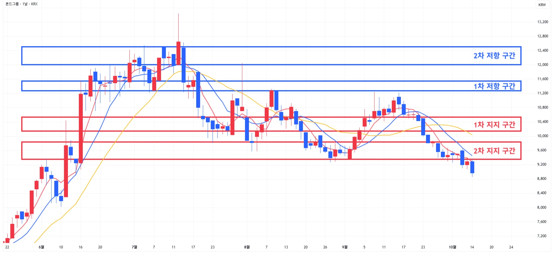 3) 폰드그룹 : 큰 변동성 없이 2차 지지 구간 하단 근처에서 마무리