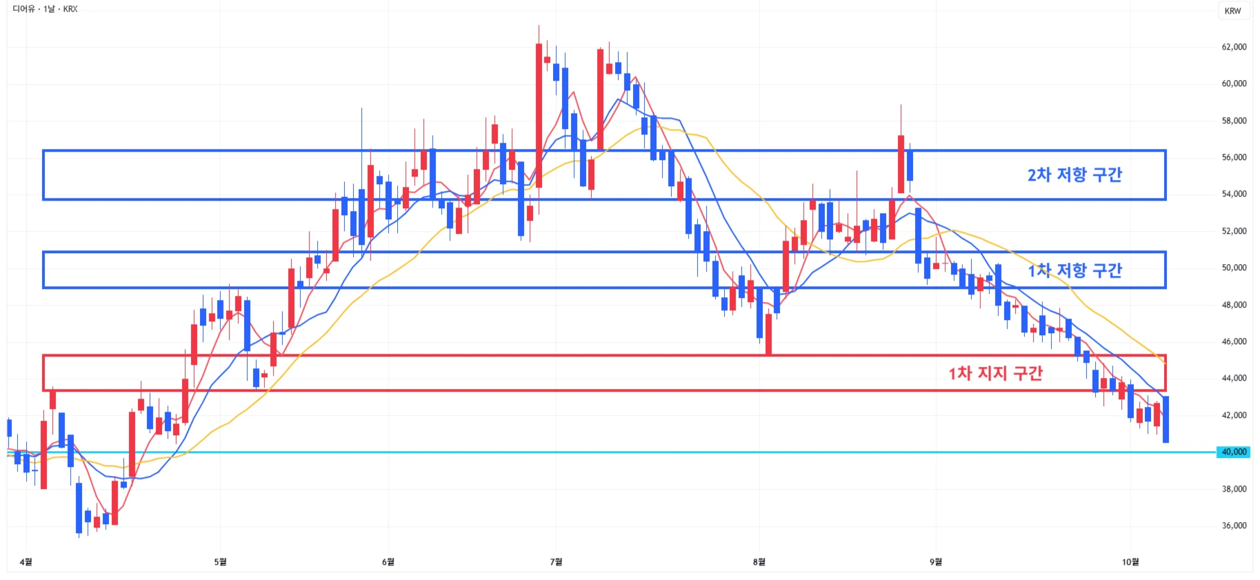 3) 디어유 : 시장 약세에 4만원 근처에서 하락 마무리
