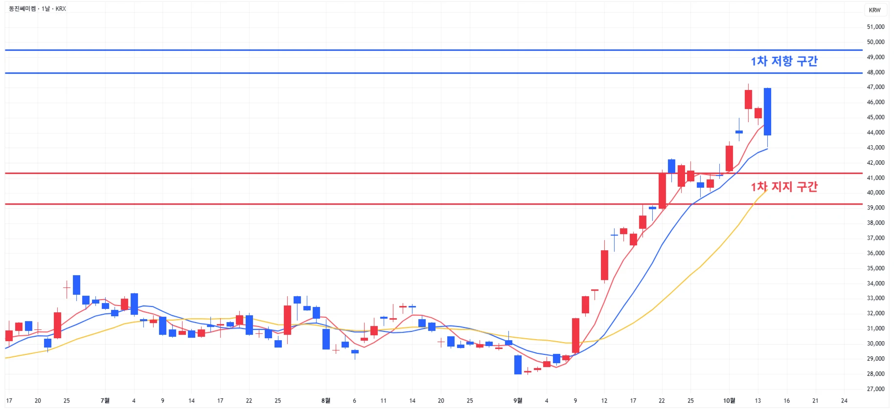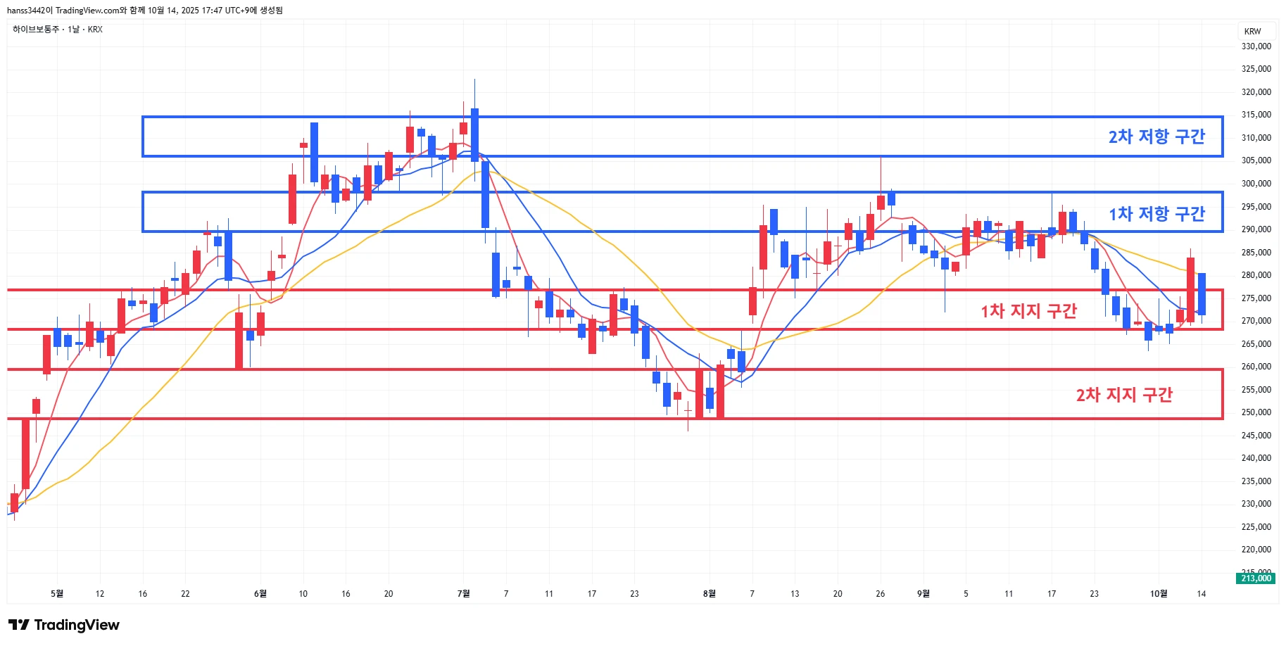 → 매도 시나리오 예시) 1차 저항 구간 재도달 시 보유 물량의 2~30% 분할 매도 진행 또는 2차 저항 구간까지 홀드