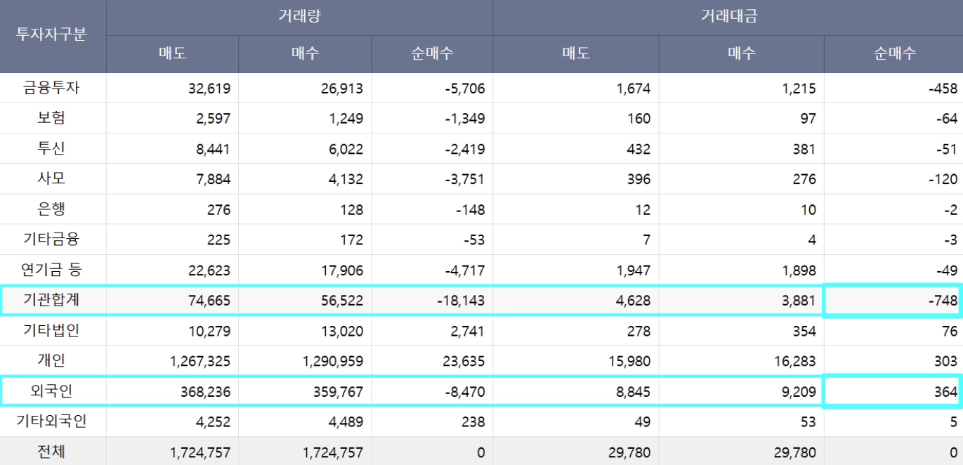 → 수급 현황 : 기관 순매수는 지속되는 중