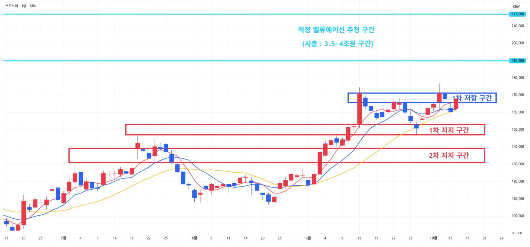 → 매수 시나리오 예시) * 10월 17일 ~ 21일 유럽종양학회에서 'GI-102' 단독요법, 키트루다 병용요법 1·2상 연구 데이터 발표 계획 1) 1차 지지 구간 내 분할 매수 진행 2) 1차 지지 구간 하단 이탈 시에는 일부 물량 손절 후, 2차 지지 구간 도달 시 분할 매수 진행