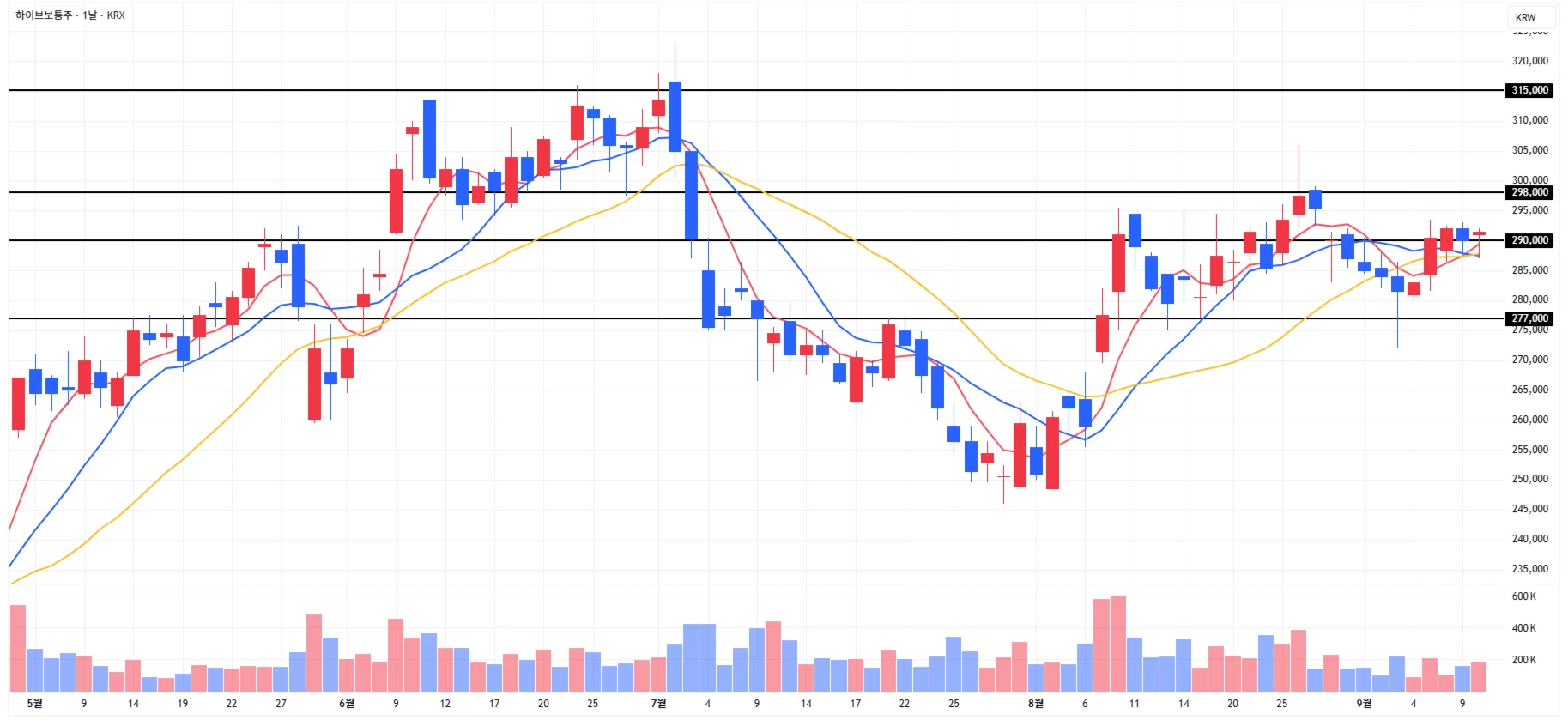 4) 하이브 : 큰 변동성 없이, 1차 저항 라인에서 마무리