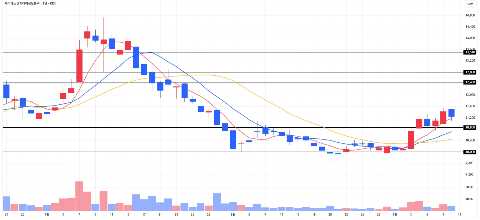 1) 제이에스코퍼레이션 : 큰 변동성 없이 당일 소폭 하락하며 마무리