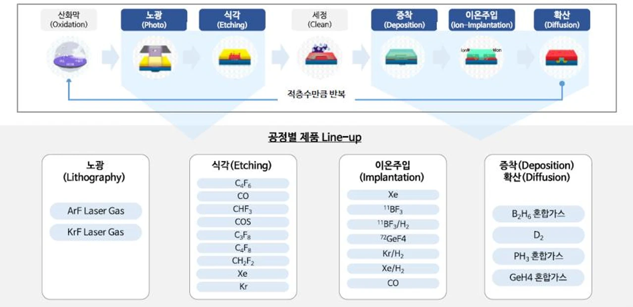 글로벌 메이저 기업 소수가 과점해온 특수가스 소재들을 국산화하며 경쟁력