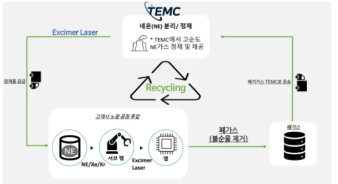 티이엠씨는 반도체 및 디스플레이 공정에 필요한 약 15종의 특수가스를 공급하는 기업