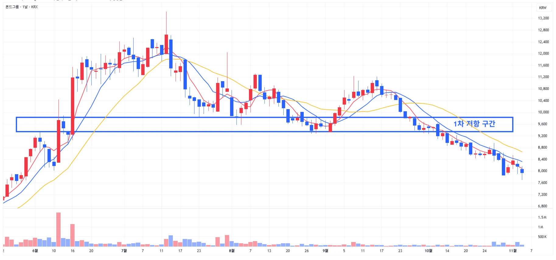 (넥스트레이드에서 1차 지지 구간 상단 구간까지 하락)