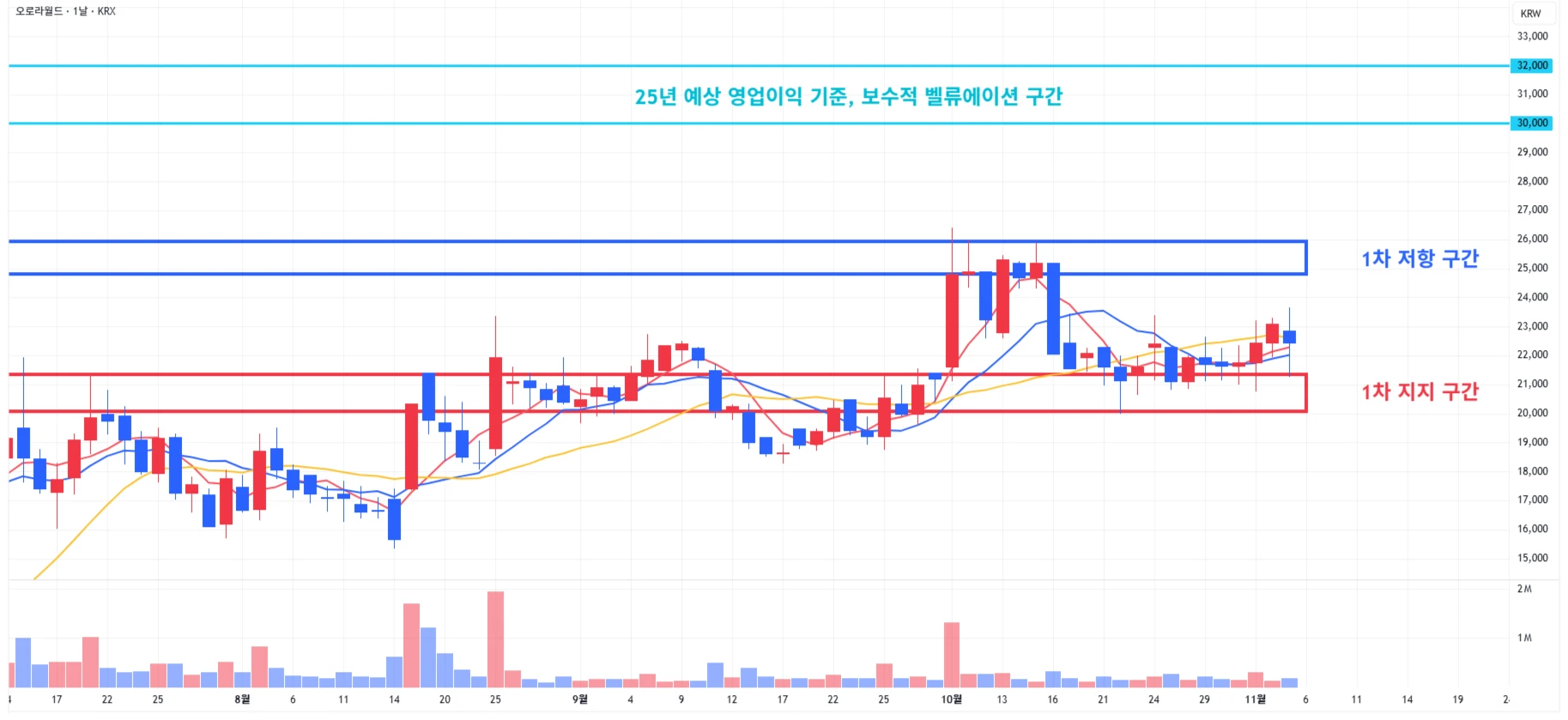오로라 : 장중 1차 지지 구간 상단까지 하락하기도 하였으나,