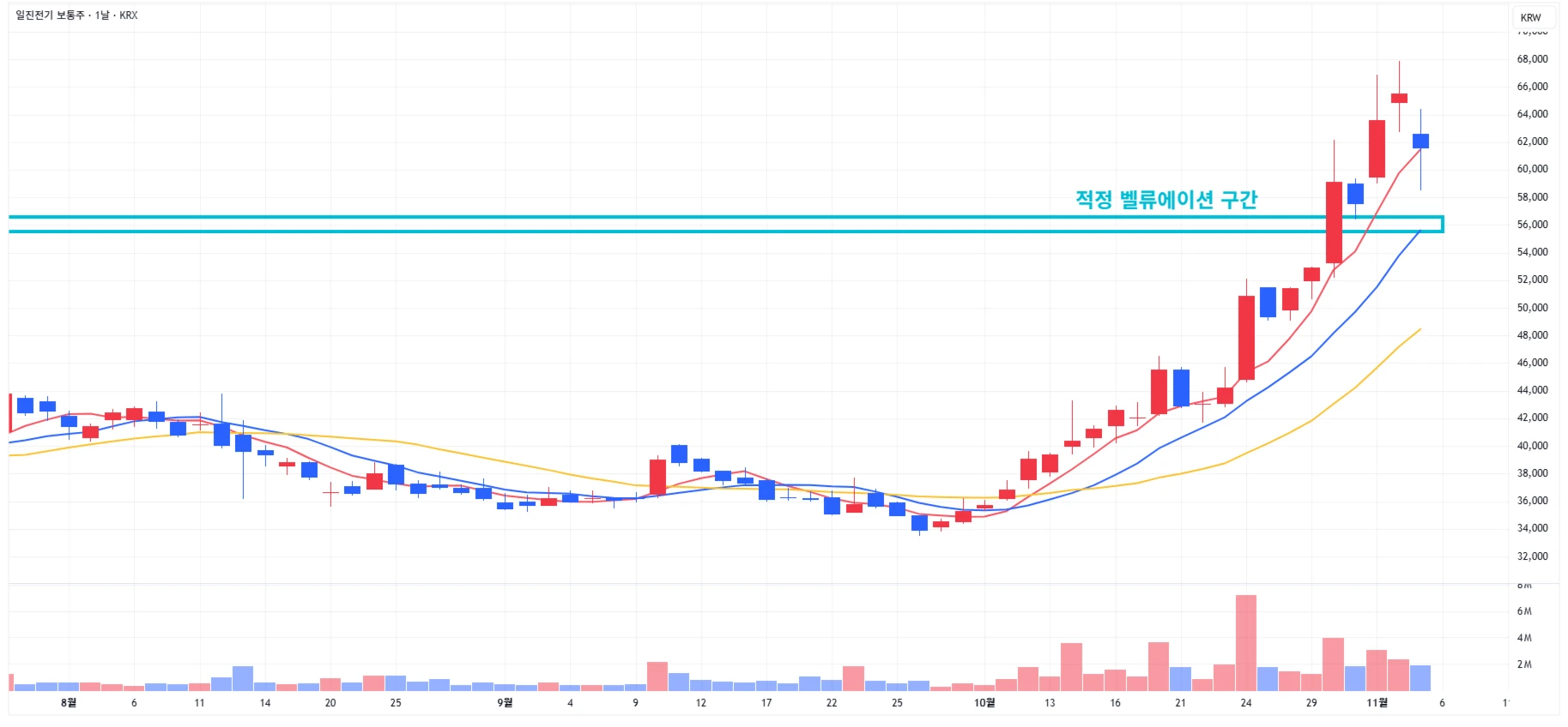 2) 일진전기 : 시장 급락에 하락 당일 하락 마무리