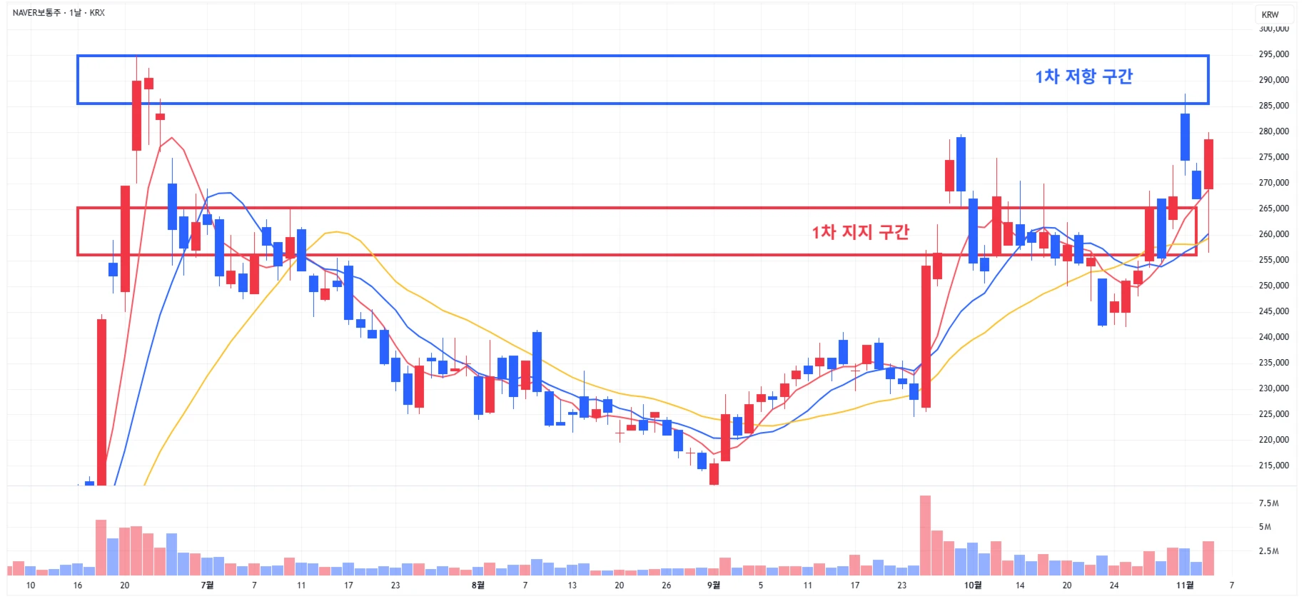 1) 네이버 : 당일 시장 약세에도 불구하고 호실적 발표에 힘입어